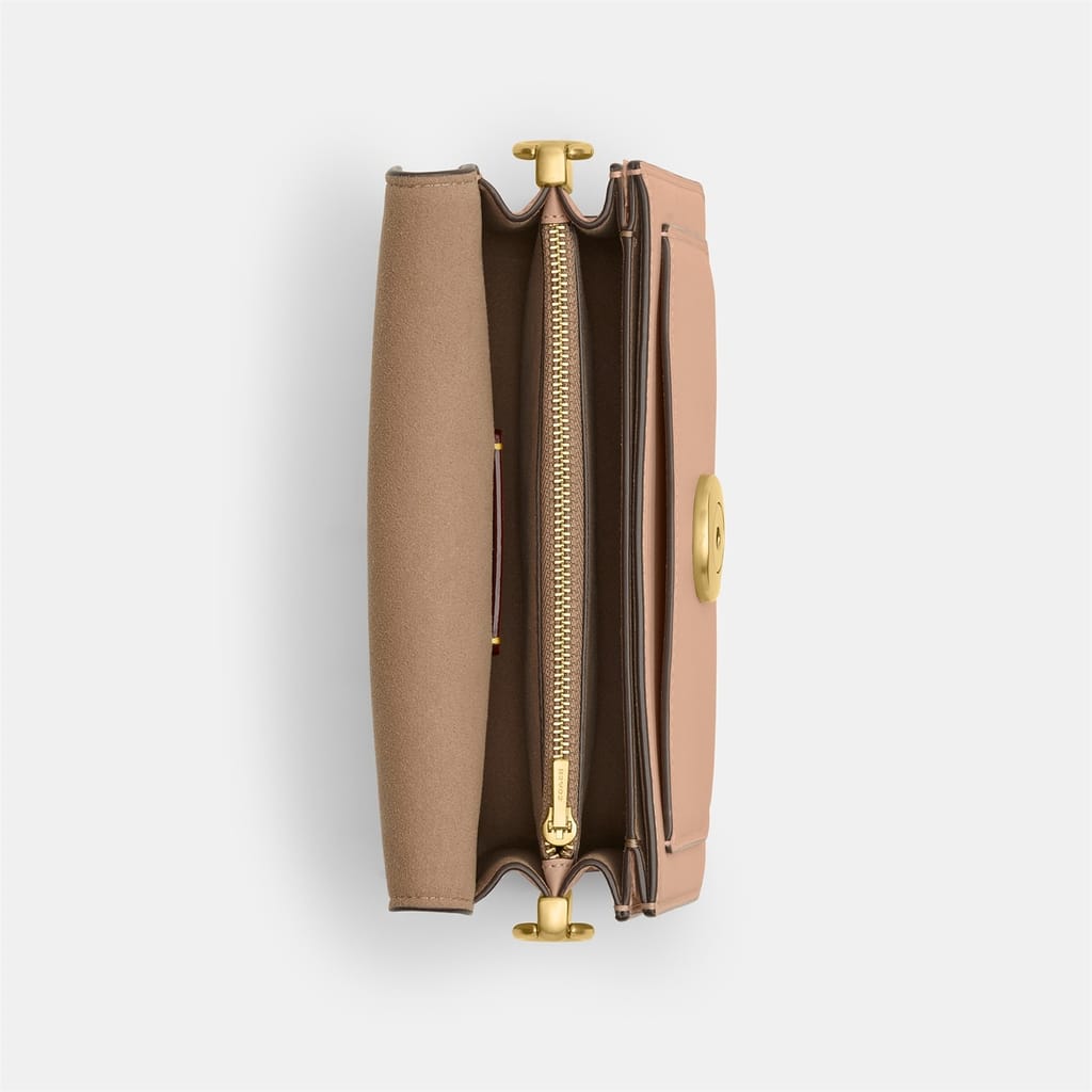 - The brass hardware adds a premium finish while the signature 'C' clasp serves as both a secure closure and a distinguished design element.