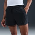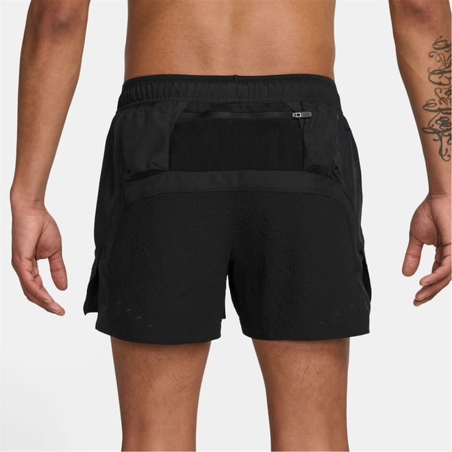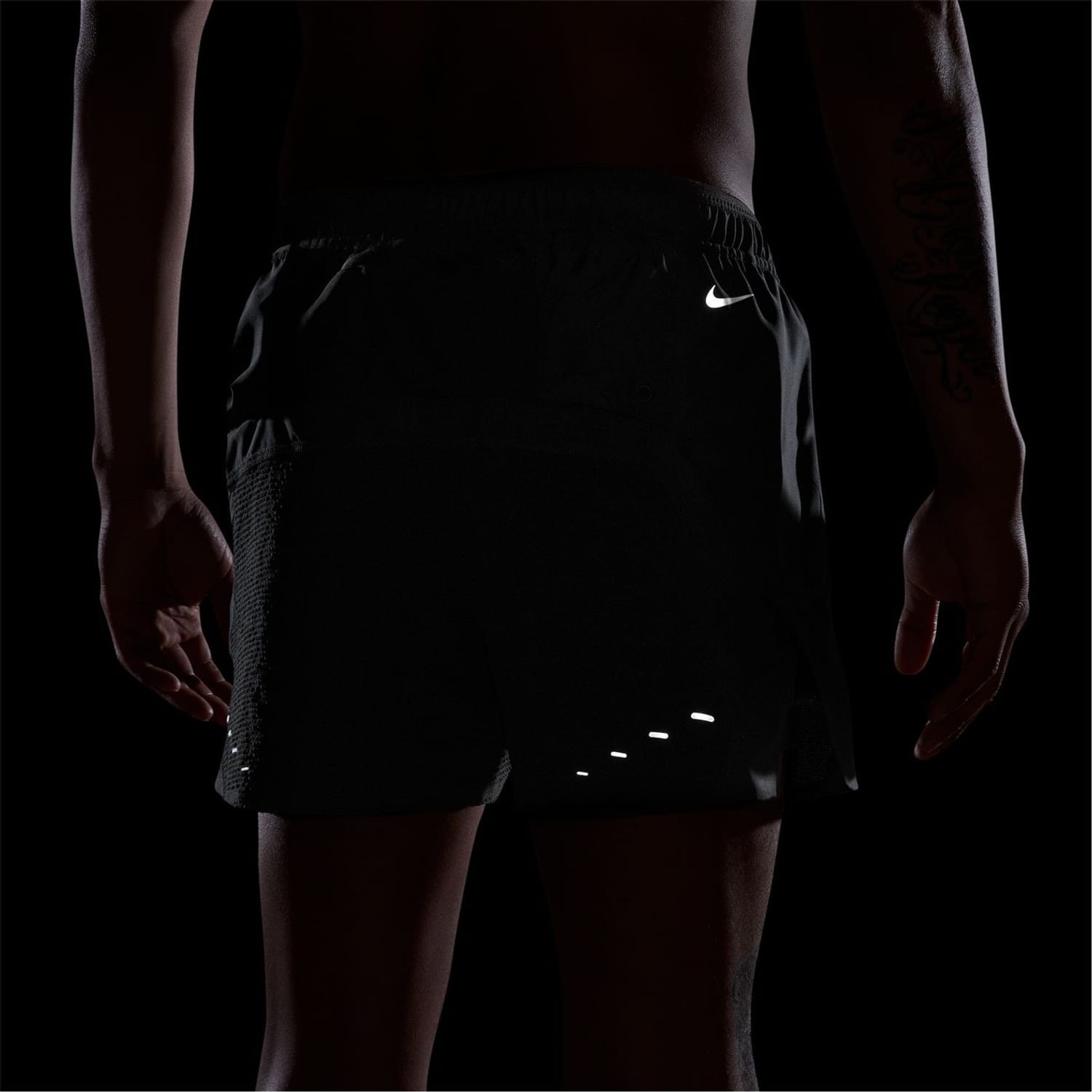 Nike running shorts designed for performance and style. These solid bermuda shorts feature a drawstring closure for a secure fit. Part of the activewear collection, they include practical embellishments like a logo and multiple pockets, including zipped and mesh options, ensuring functionality during your run. -