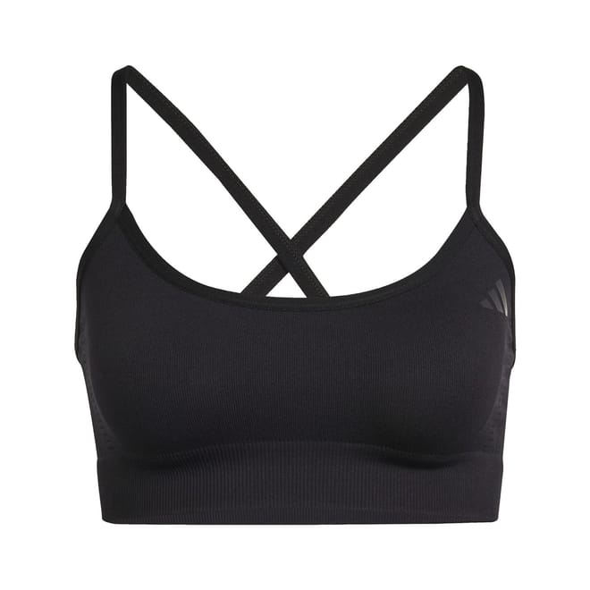 This adidas top is designed for sporting activity, featuring a snug fit and spaghetti straps. The cropped length and solid pattern offer a sleek look, while the low-impact design ensures comfort during workouts. -