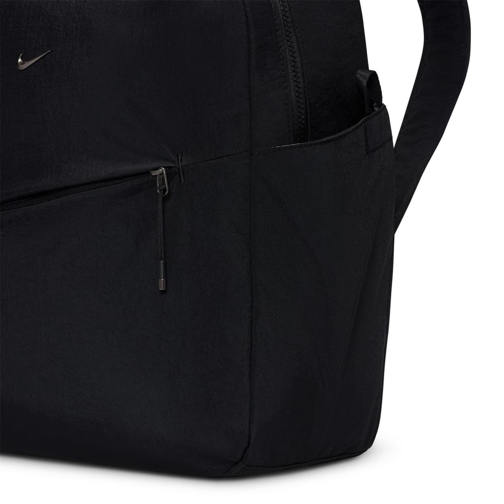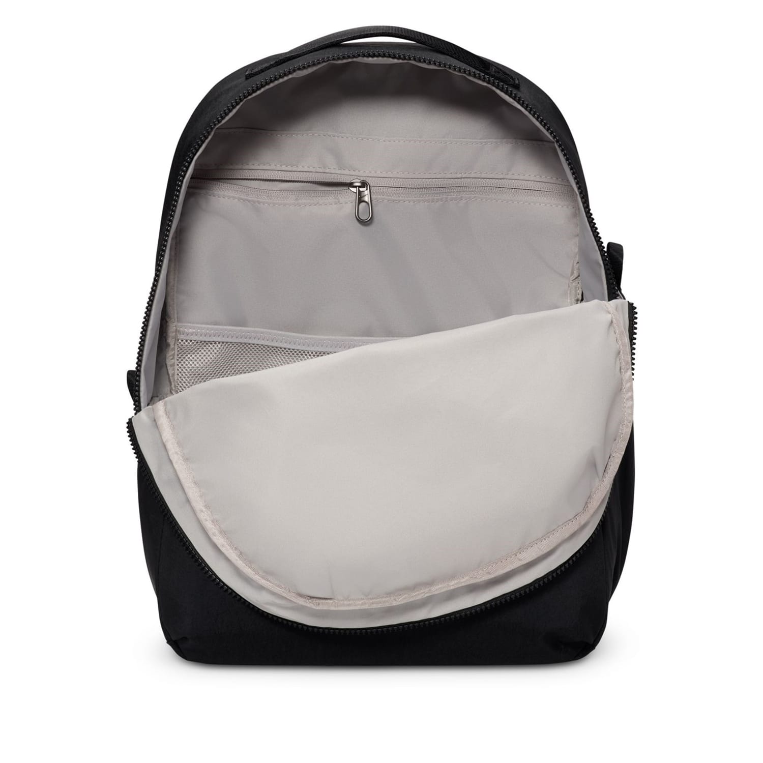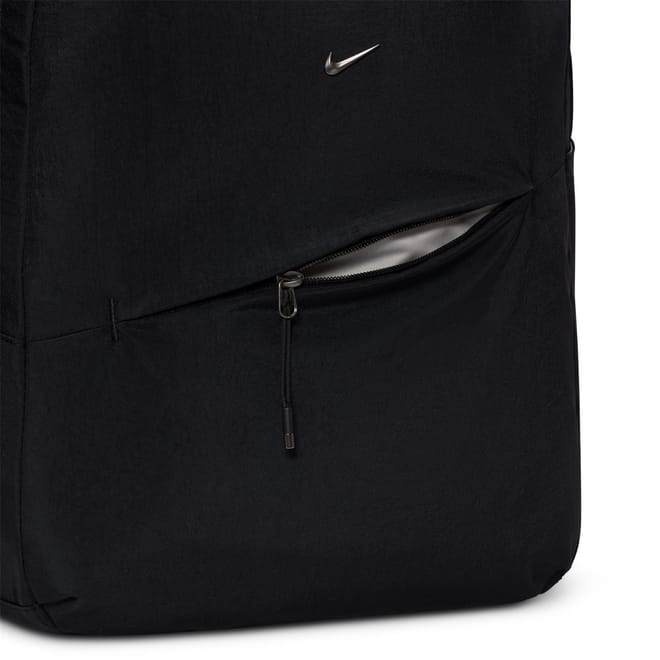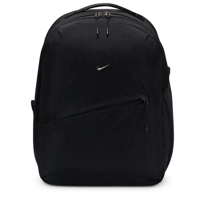 The Nike Aura backpack is a stylish and functional choice for carrying essentials. Featuring a secure zipper closure and a convenient top handle, this backpack ensures easy access and comfortable carrying. The design is enhanced with a prominent logo and a practical zipped pocket, making it both fashionable and practical for everyday use. -