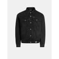 This Guess trucker jacket features a classic shirt collar and a button closure. Designed in a regular fit, it has a short length with a straight hem. The solid pattern is complemented by logo embellishments, including a chest pocket for added functionality. -
