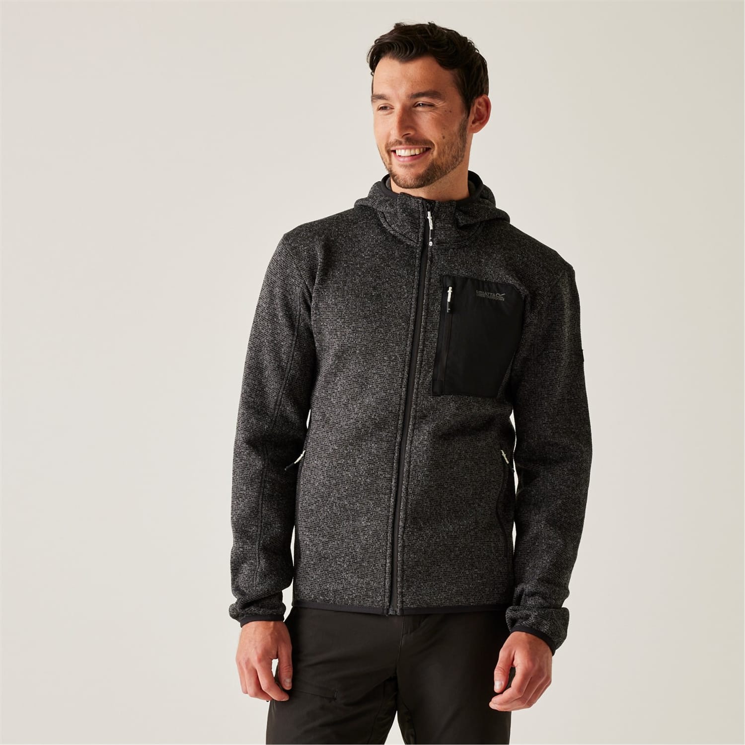This Regatta jacket features a hooded neckline and a textured pattern, offering a stylish yet functional design. The regular fit ensures comfort, while the front zipper closure provides practicality. Ideal for those seeking a blend of fashion and utility in their outerwear. -