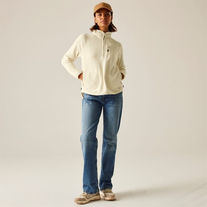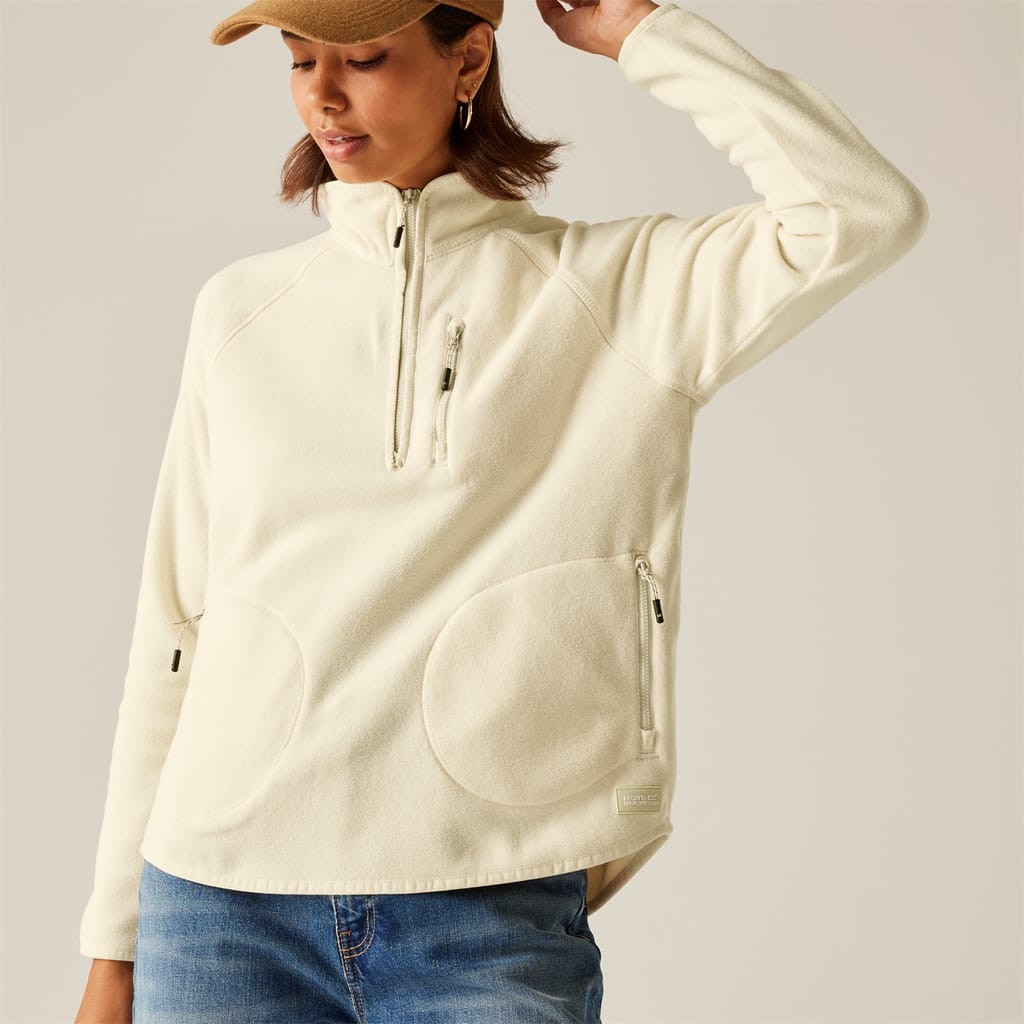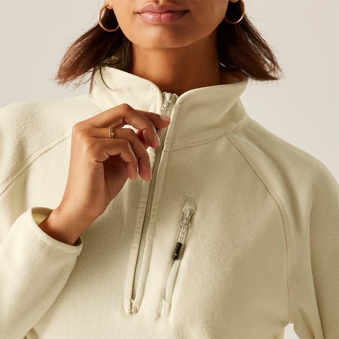 Warm and practical, our Frankie Half Zip women's fleece is crafted from soft micro fleece for everyday adventures. Raglan sleeves ensure flexibility, while stretch binding and a curved hem offer a secure, flattering fit. Complete with zipped pockets for added convenience. -