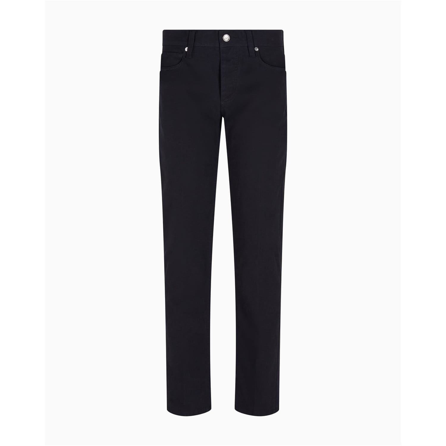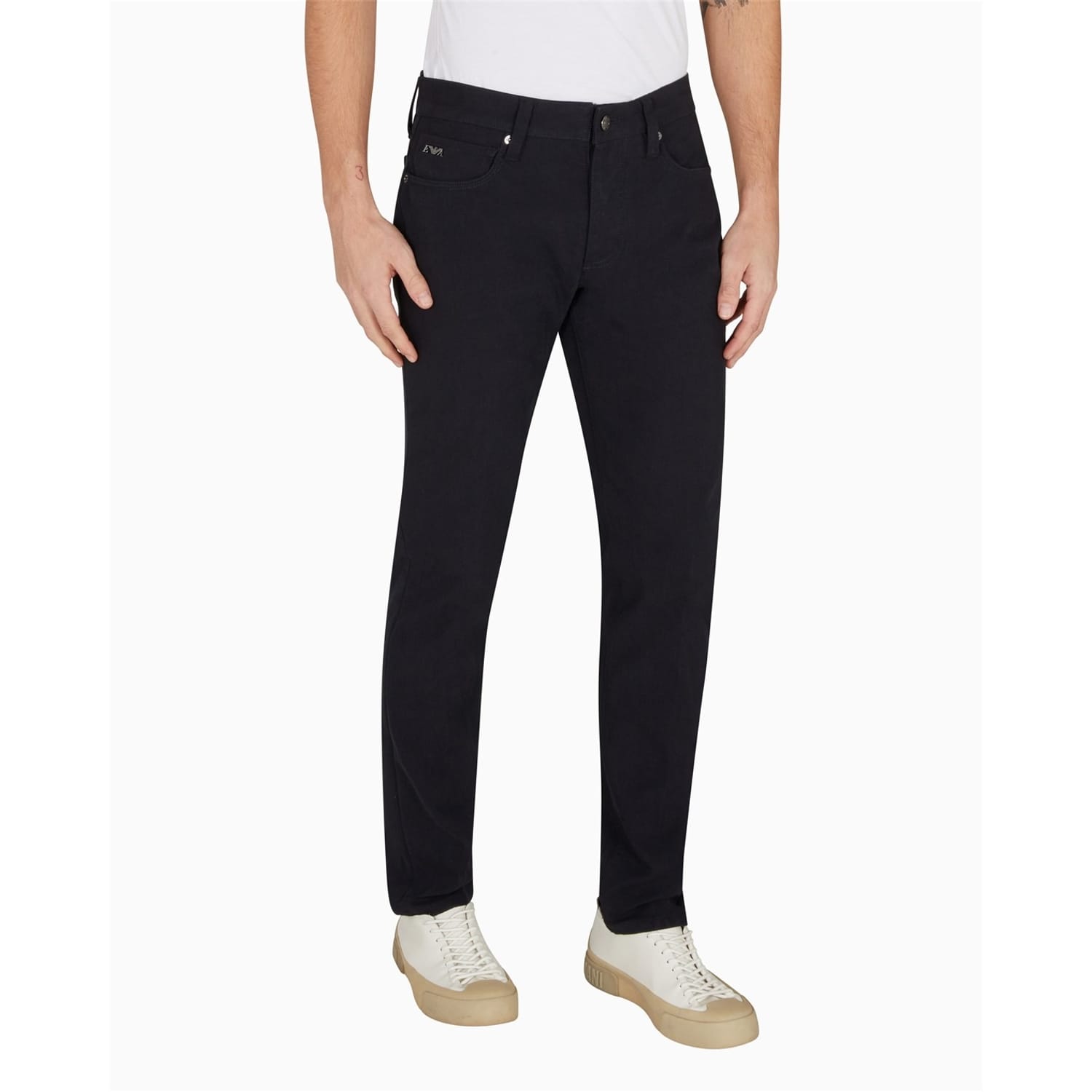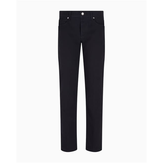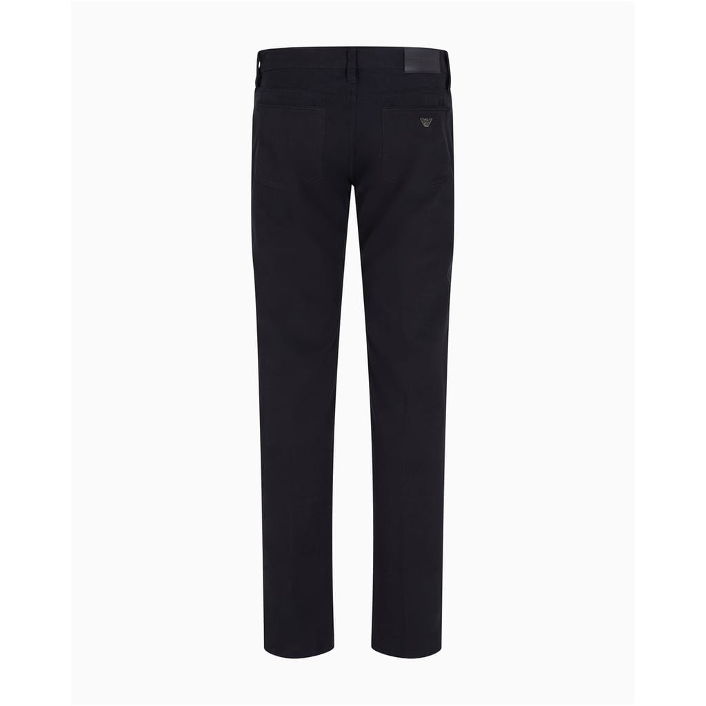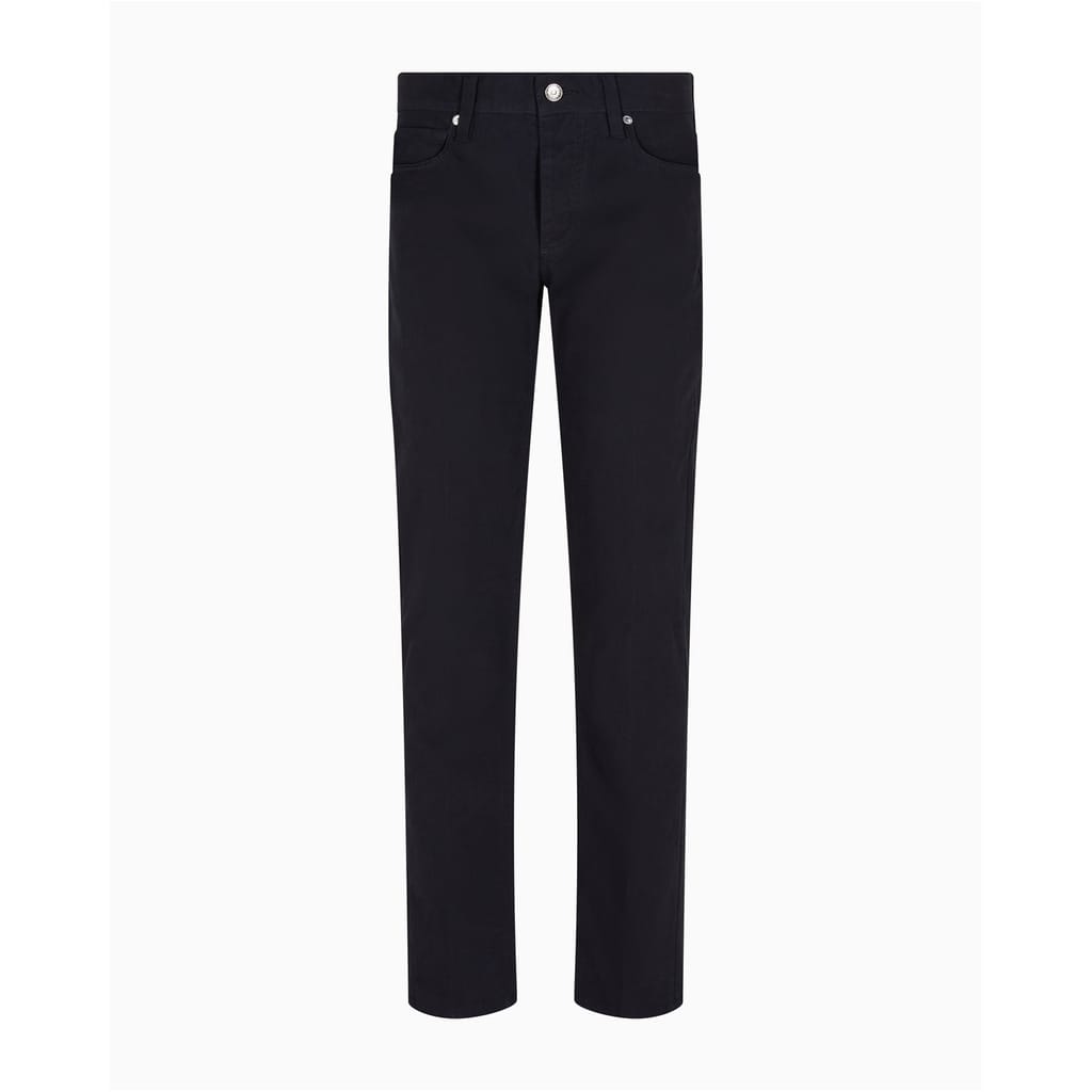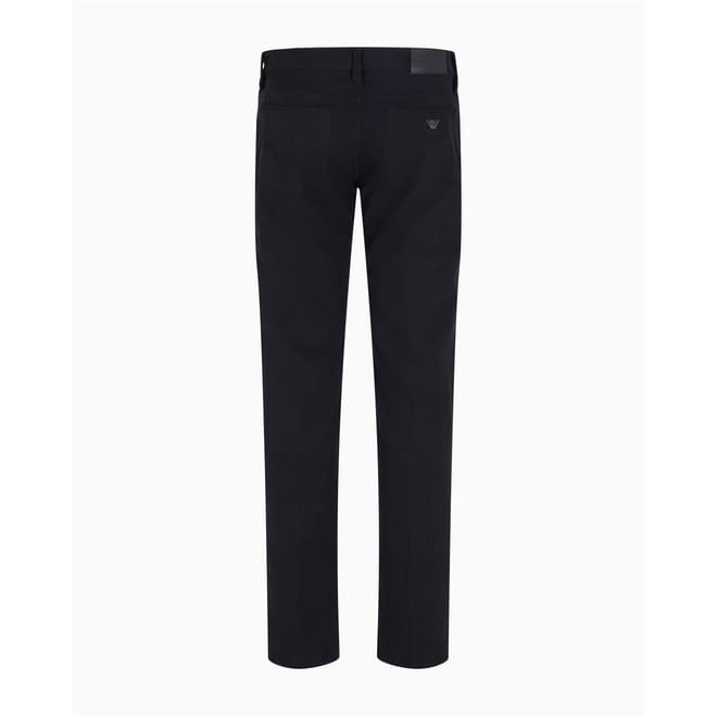 Emporio Armani chinos offer a sleek slim fit, perfect for a refined look. These five-pocket pants feature a zip fly and button closure, along with multiple pockets for practicality. The subtle logo adds a touch of brand identity, making these chinos a versatile addition to any wardrobe. -