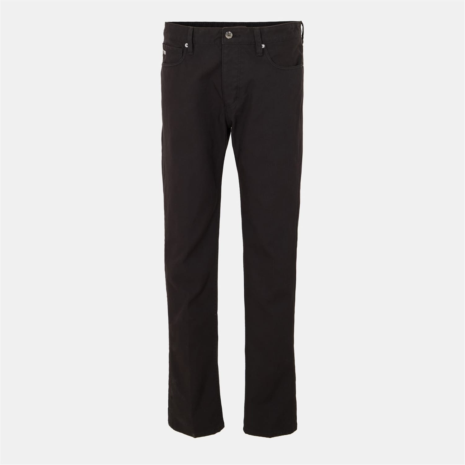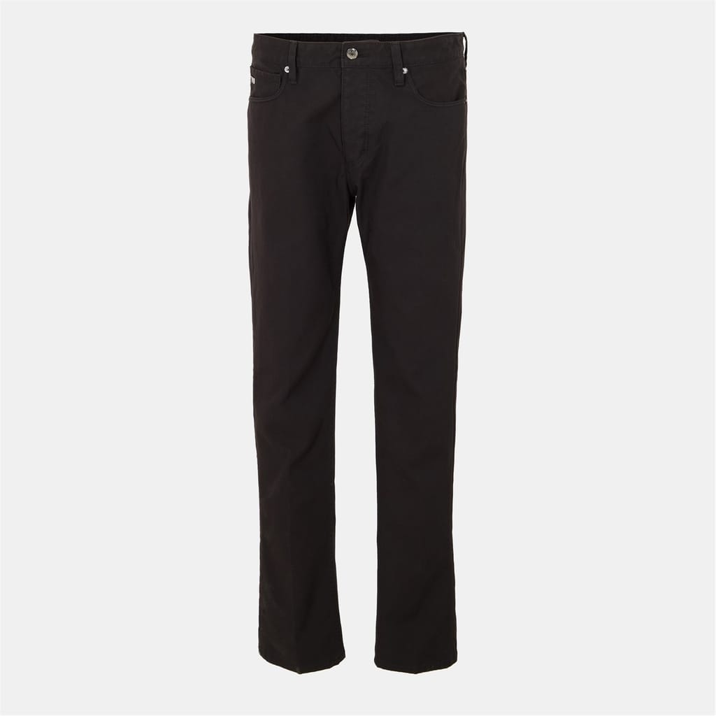 Emporio Armani presents these stylish five-pocket pants, featuring a zip fly and button closure. Designed with a slim fit, these pants offer a sleek silhouette. The multi-pocket design adds functionality, making them a versatile addition to your wardrobe. -