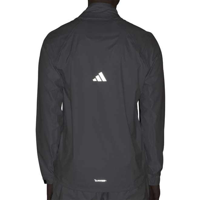 This adidas running jacket from the activewear collection is designed for performance. Featuring a solid pattern, it has a regular fit with a straight hem. The jacket includes a convenient front zipper closure and raglan sleeves, ensuring comfort and ease of movement. -