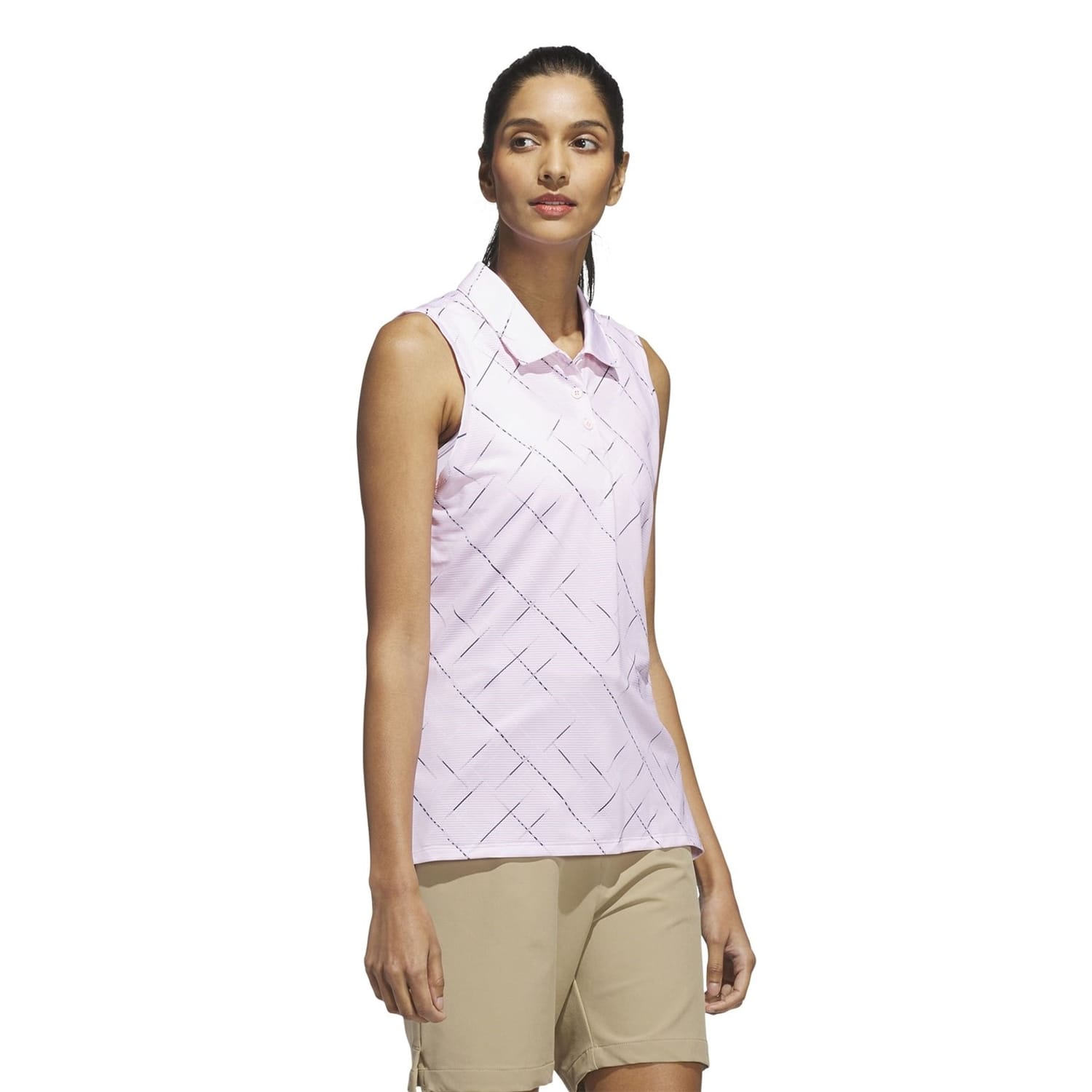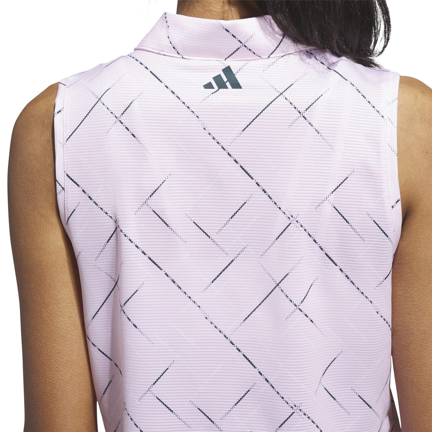This adidas top is perfect for casual wear, featuring a sleeveless design with a polo collar. The geometric pattern adds a stylish touch, while the regular fit ensures comfort. A subtle logo embellishment completes the look, making it a versatile addition to your wardrobe. -