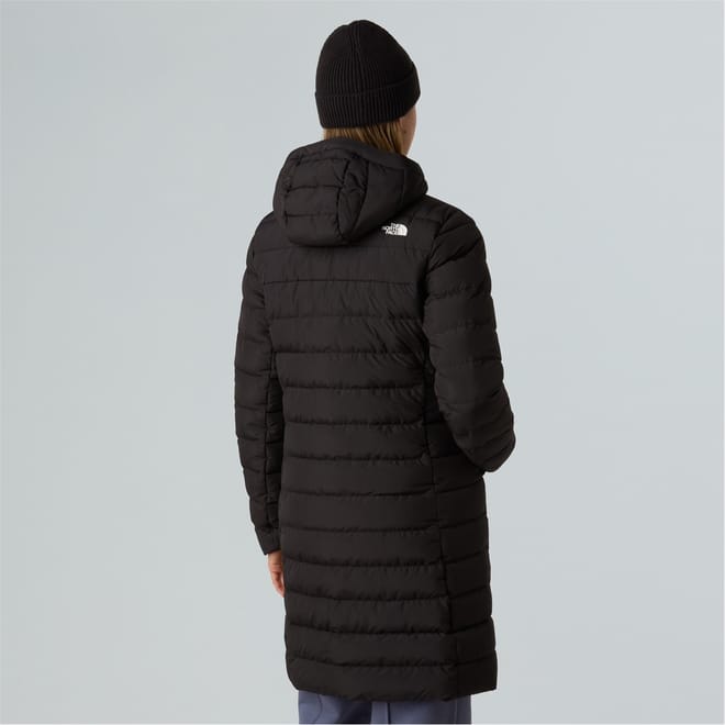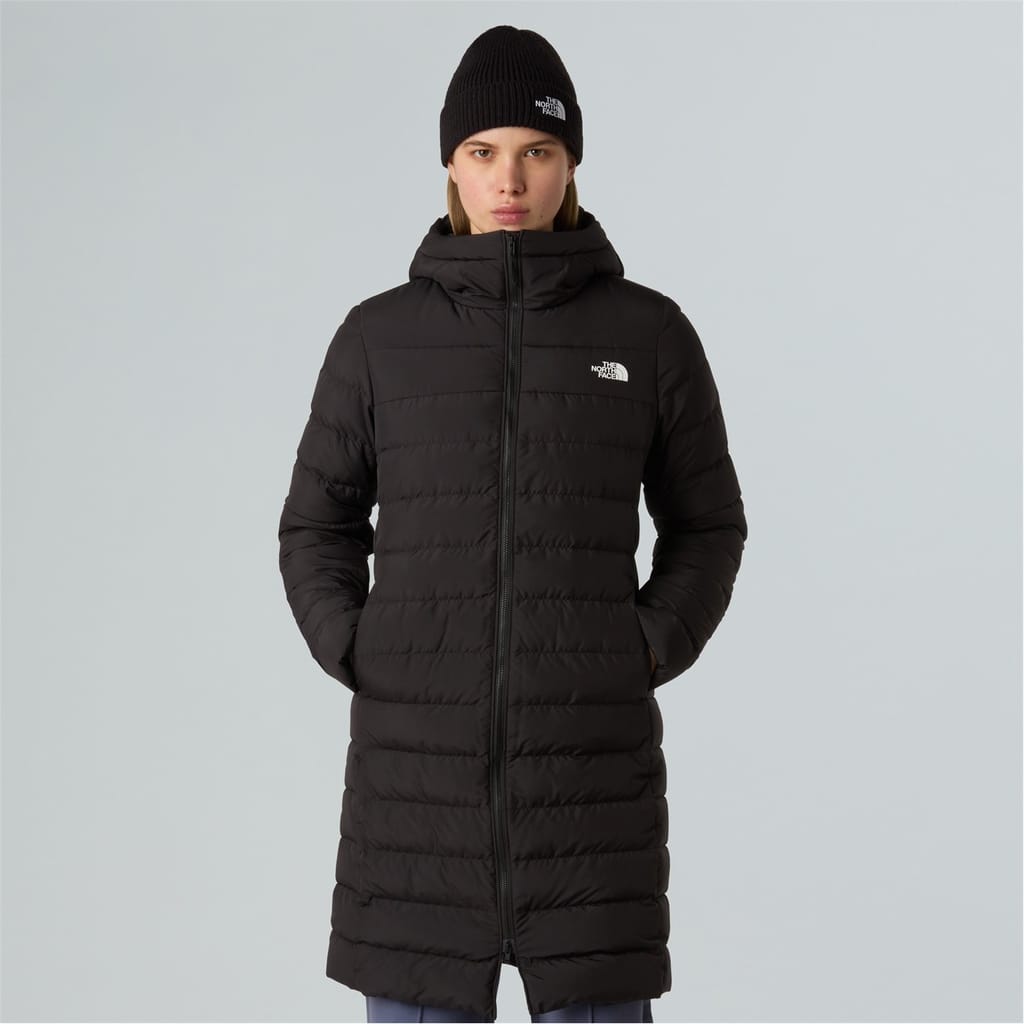 The North Face parka jacket is designed for winter, offering a hooded neckline and a solid pattern. It features a regular fit with a straight hem and a convenient zipper closure. Part of the sport and casual collections, this jacket is adorned with a logo, making it a practical choice for cold weather. -
