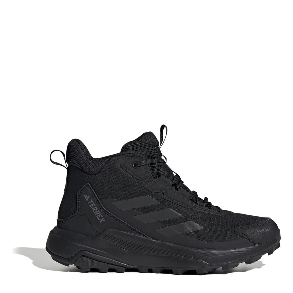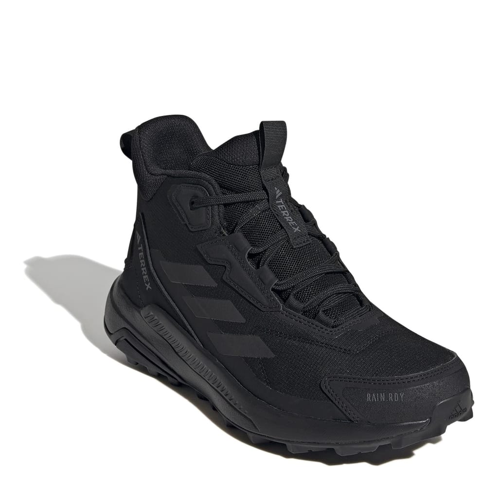 Wander. Roam. Explore. Lace up these adidas Terrex Anylander Mid RAIN.RDY Hiking Shoes and explore high and low, wet or dry. A mid-height cuff offers ankle support, and a cushioned midsole delivers lasting comfort. RAIN.RDY works with a gusseted tongue to keep your feet dry and comfortable in wet conditions. Built for durability over the long haul, they feature a Traxion outsole for a sure-footed grip.