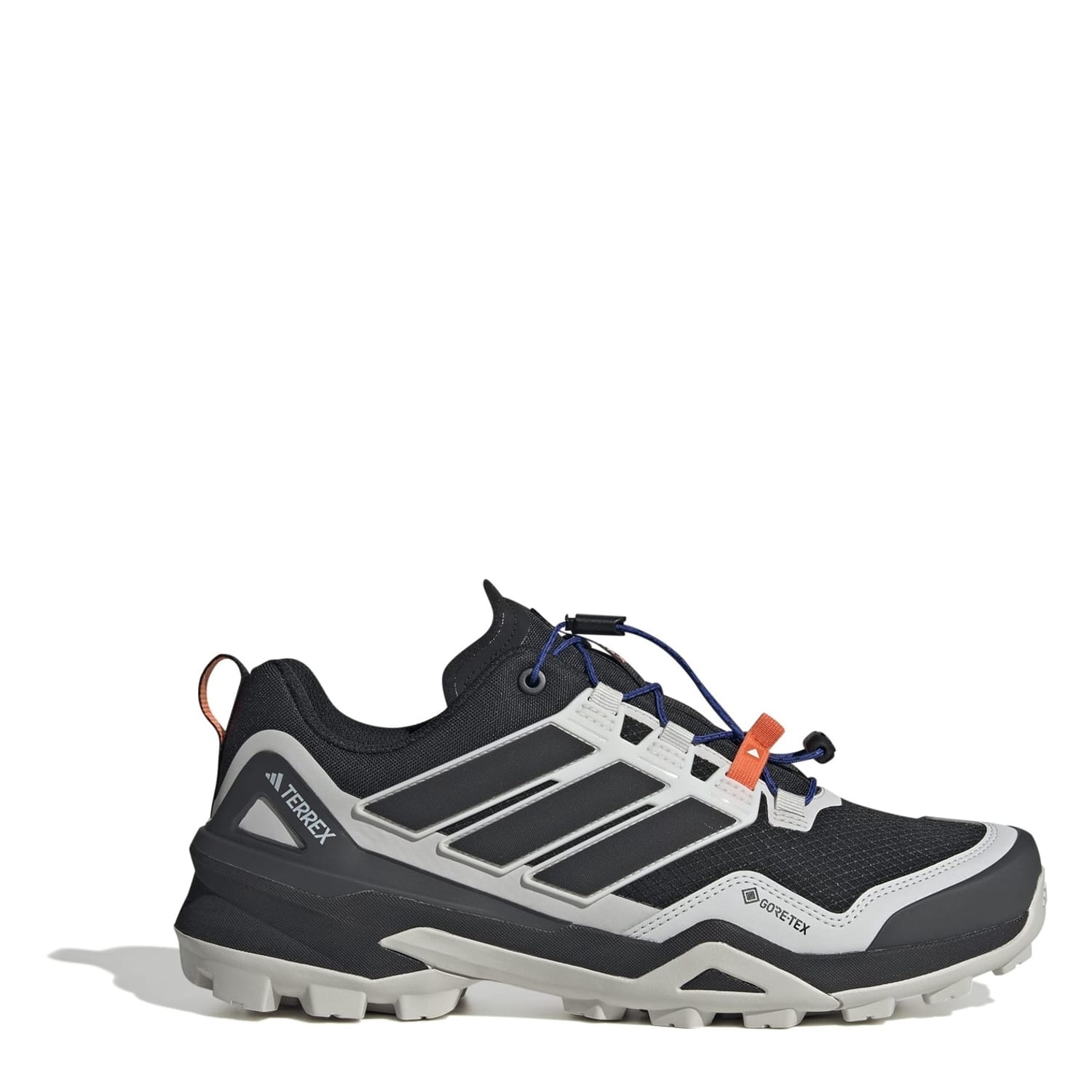 Designed for hikes and rugged summit scrambles, these adidas Terrex Skychaser hiking shoes balance protection, control and comfort for moving fast on and off the trail. They combine the agile, responsive feel of trail running shoes with the support and durability of hiking shoes. Step-in comfort and a lightweight feel keep you focused on the trail ahead. A waterproof GORE-TEX EPE membrane seals out wet conditions while letting your feet breathe and regulate temperature. A ripstop upper with abrasion-resistant overlays keeps them light and durable. The all-conditions grip of Continental™ Rubber maintains traction across all surfaces, wet or dry. The ultralight Lightstrike cushioning allows for responsive feel and agile footwork.