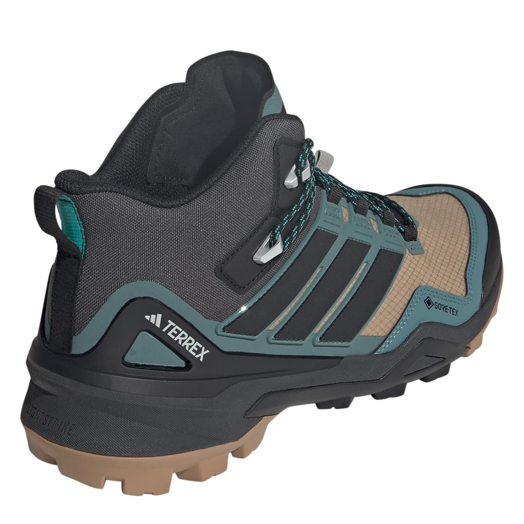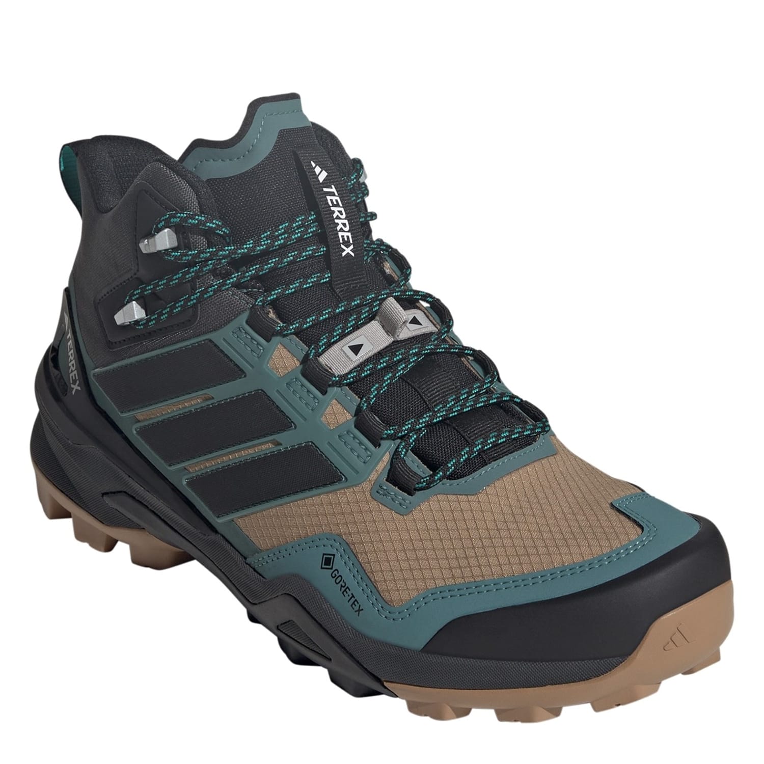Designed for hikes and rugged summit scrambles, these adidas Terrex Skychaser hiking shoes balance protection, control and comfort for moving fast on and off the trail. They combine the agile, responsive feel of trail running shoes with the support and durability of hiking shoes. Step-in comfort and a lightweight feel keep you focused on the trail ahead. A waterproof GORE-TEX EPE membrane seals out wet conditions while letting your feet breathe and regulate temperature. A ripstop upper with abrasion-resistant overlays keeps them light and durable. The all-conditions grip of Continental™ Rubber maintains traction across all surfaces, wet or dry. The ultralight Lightstrike cushioning allows for responsive feel and agile footwork.