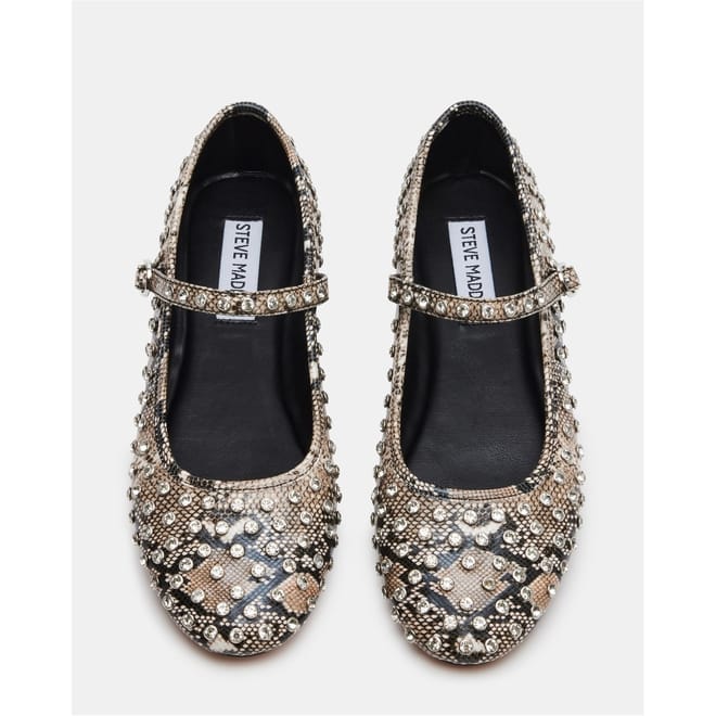 Add a touch of sparkle to every step with the Steve Madden Vinetta-R Rhinestone Sandal, a relaxed Mary Jane design that is destined to instantly elevate any ensemble. A nod to the current ballet pump trend, these shoes are crafted from synthetic leather, ensuring comfort and style with every stride. The flat shoes ensure stability and comfort during all-day wear, while the slim buckle straps allow you to adapt the fit to keep your foot securely in place.