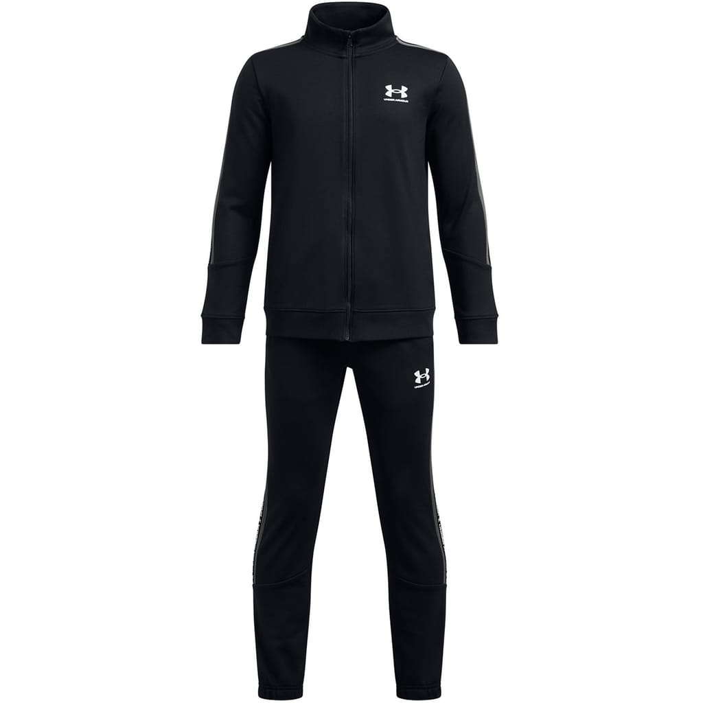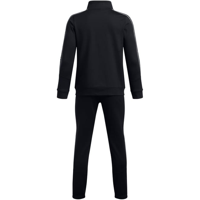 Discover the Under Armour full track suit, featuring a funnel neck and zip neck design with long plain sleeves. This set includes a sweatshirt and track pants, both adorned with a side logo and tape detail. Ideal for those seeking a blend of style and functionality, this ensemble is perfect for athletic pursuits or casual outings. -