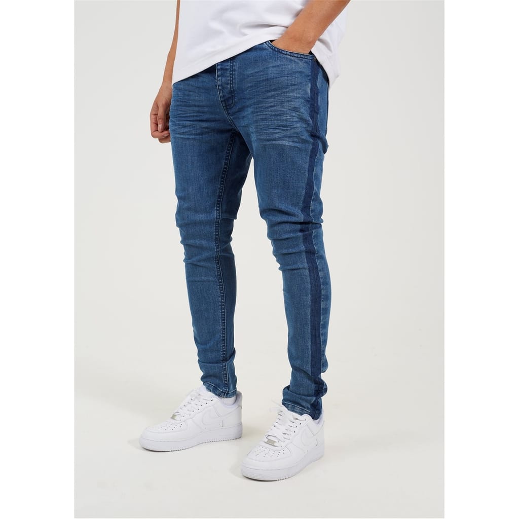 - Dark blue wash stripe detail