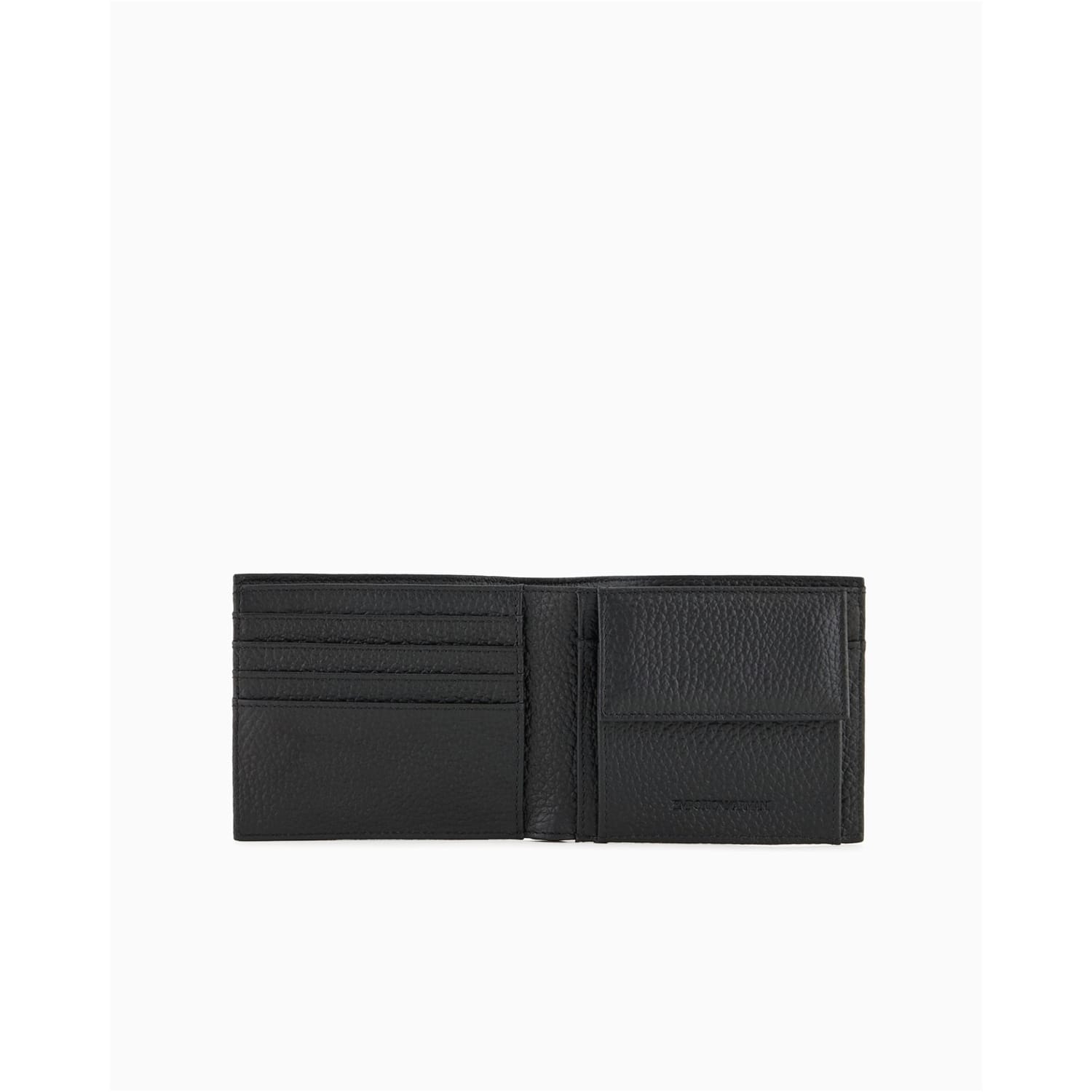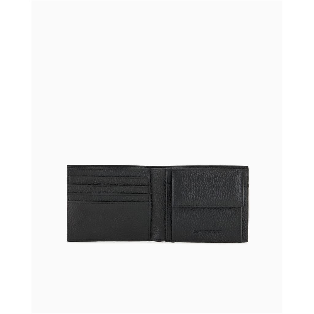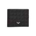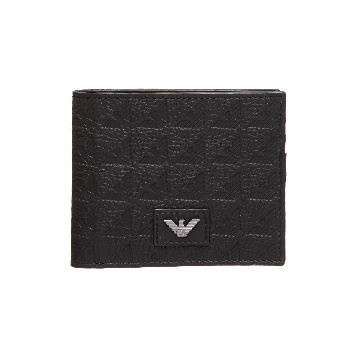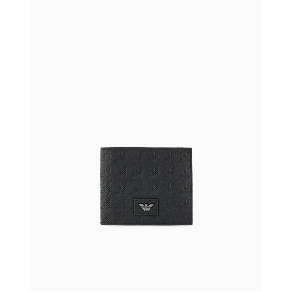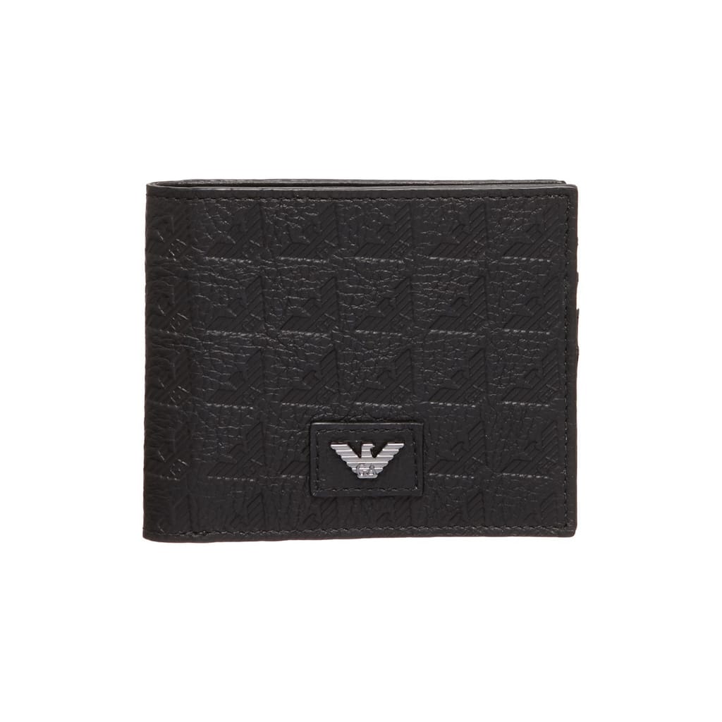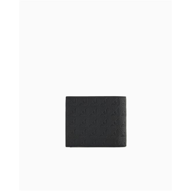 This Emporio Armani bifold wallet features an all-over logo pattern, offering a stylish and functional accessory. The design includes an embossed finish, a logo patch, and a metal logo, adding a touch of sophistication. With a practical pocket, it provides ample space for essentials while maintaining a sleek profile. -