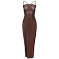 This Honeyz maxi dress is a stunning slip style, featuring a spaghetti strap neckline and a slim fit. The solid pattern adds a touch of elegance, while the slit embellishment provides a chic detail. Perfect for making a statement at any event. -