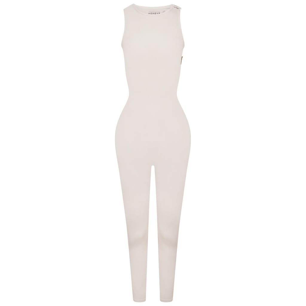 Discover the Honeyz sleeveless bodysuit with a crew neck, designed for a slim fit. This casual piece features practical pockets, combining style and functionality effortlessly. -
