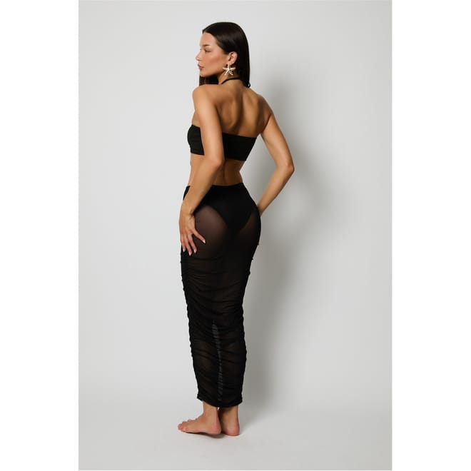 This Honeyz maxi dress is a stunning slip style piece, featuring a halter neckline and a slim fit. The solid pattern is elegantly complemented by mesh details and cut-out embellishments. The dress is designed with a tie closure, adding a touch of sophistication to its overall look. -