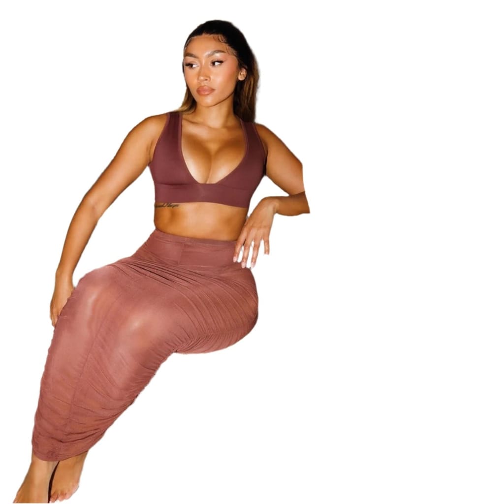 Discover the elegance of Honeyz with this maxi pencil skirt, perfect for casual collections. Featuring a slim fit, this skirt is designed with intricate mesh details and ruched embellishments, offering a sophisticated touch to your wardrobe. -