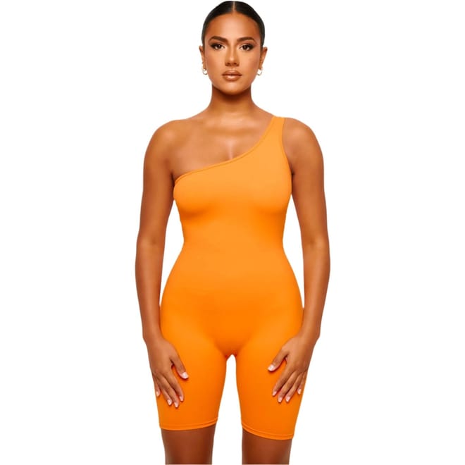 Discover the Honeyz playsuit, a stylish sleeveless piece with a one-shoulder neckline. Designed in a slim fit, this romper offers a chic and modern look, perfect for any occasion. -