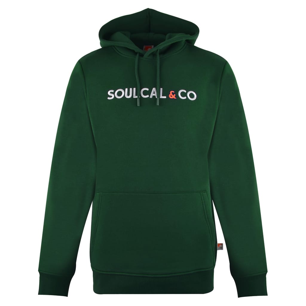 The Soulcal sweatshirt jacket features a hooded design, perfect for casual wear. It boasts a regular fit with ribbed cuffs and hem for added comfort. The solid pattern is complemented by embroidered logo lettering, adding a stylish touch. Ideal for those seeking a blend of comfort and style. -