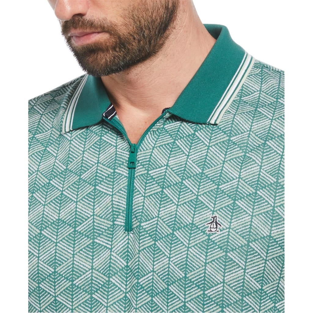 Elevate your semi-formal wardrobe with this Original Penguin polo shirt. Featuring a geometric pattern and crafted in a regular fit, it showcases a polo collar and short sleeves. The shirt is equipped with a zipper closure and ribbed cuffs, providing a blend of style and comfort. A perfect choice for those who appreciate both classic design and contemporary flair. -
