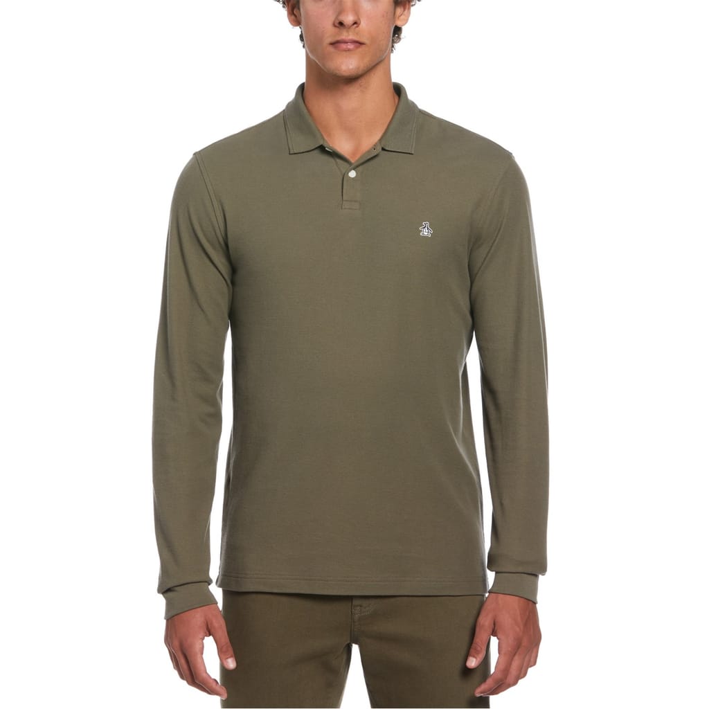 Elevate your semi-formal attire with this Original Penguin polo shirt. Featuring long sleeves and a polo collar, it offers a classic look perfect for various occasions. Designed with a regular fit and button closure, it combines style and comfort. The ribbed cuffs add a refined touch, making it a versatile addition to your wardrobe. -