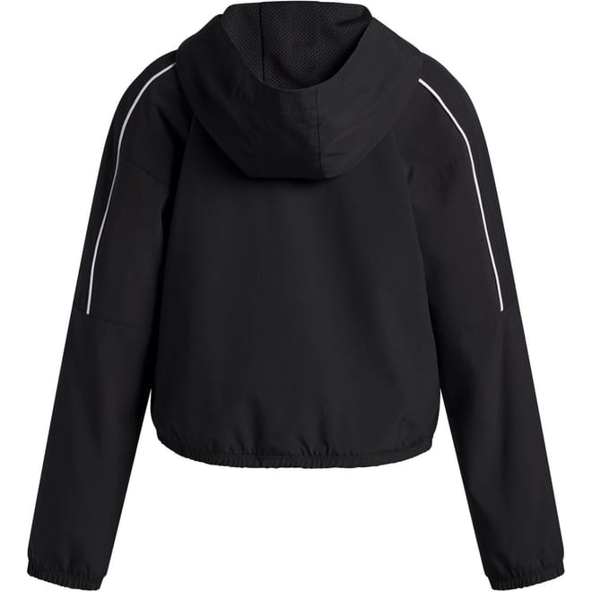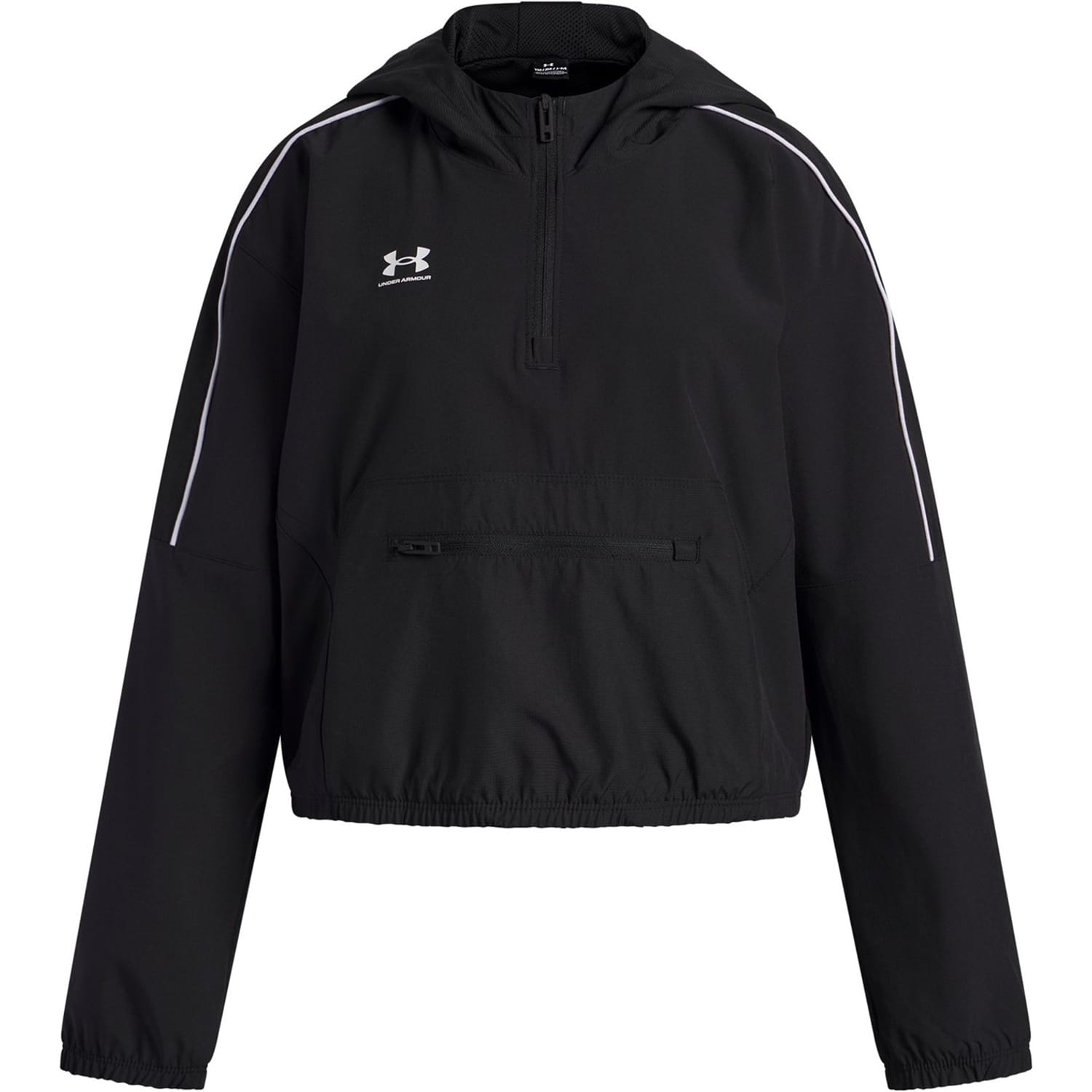 Under Armour anorak jacket features a hooded neck and a relaxed fit, perfect for unpredictable weather. This water-repellent jacket includes a zipper closure, elasticated cuffs, and hem for added comfort. The solid pattern is complemented by a logo and practical pockets, making it a versatile choice for outdoor activities. -