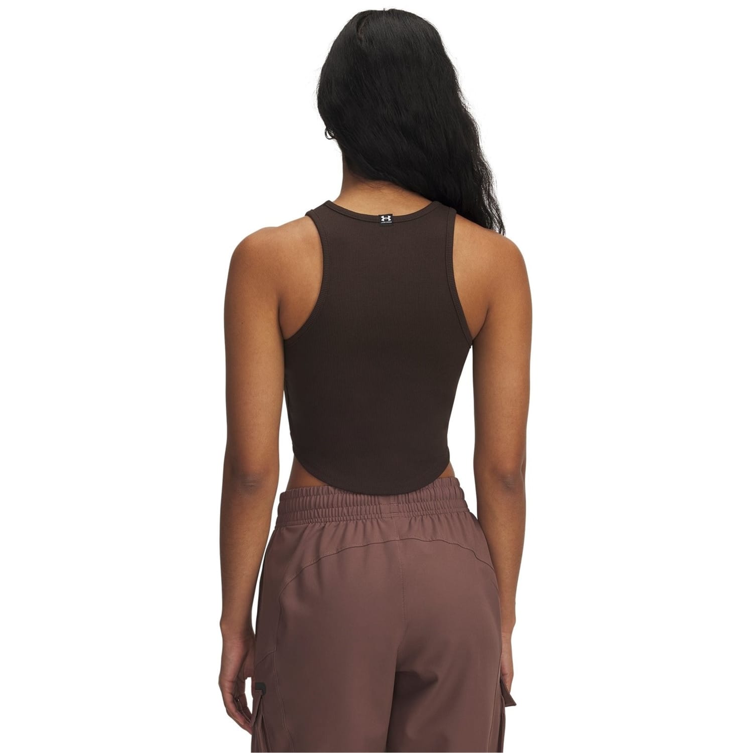 The Under Armour UA Rival top is a sleek addition to your activewear collection. Featuring a ribbed pattern and a sleeveless design, it offers a slim fit for a streamlined look. The crew neck adds a classic touch, while the logo embellishment provides a subtle brand statement. -