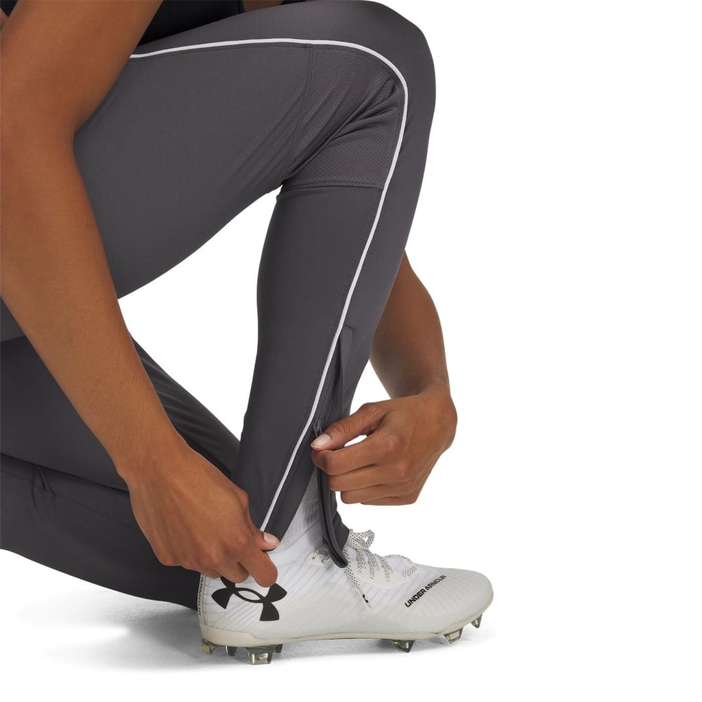 Under Armour presents these performance track pants, perfect for running enthusiasts. Designed with a slim fit, they feature a drawstring closure for a secure fit. Part of the activewear collection, these pants are adorned with a subtle logo, combining style and functionality for your athletic pursuits. -