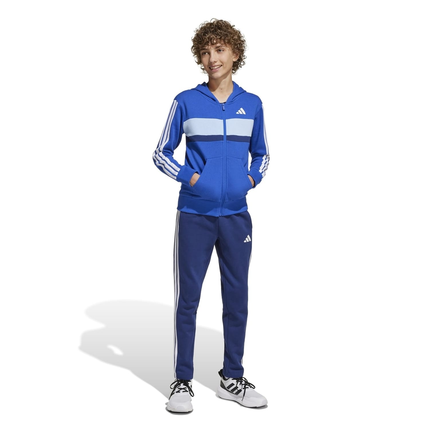 This juniors' adidas track suit was designed to keep you cosy and focused on what matters — the present moment. Done up in ultrasoft fleece, it's an outfit primed for all-day comfort. The slim-fitting pants offer a streamlined look and the full zip promises versatile layering. Just throw on the hood, zone out and get going on your goals. A track suit that combines comfort with everyday style. Tiberio 3-Stripes Colorblock Fleece Track Suit Kids