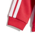 Toddlers don't check the forecast. But they know that when morning comes, it's time to play. Let them explore outdoors while keeping sniffles at bay in this infants' adidas track suit. Made from cotton-blend fleece, it adds a layer of warmth from the soft hood right down to the cuffed pants. Of course it's perfect for snuggling on the couch too. -