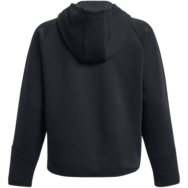 This Under Armour top is designed for activewear enthusiasts. Featuring a hooded neck and a relaxed fit, it offers comfort and style. The long raglan sleeves with elasticated cuffs ensure ease of movement. A front zipper adds functionality, while the solid pattern and logo embellishment complete the look. -