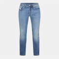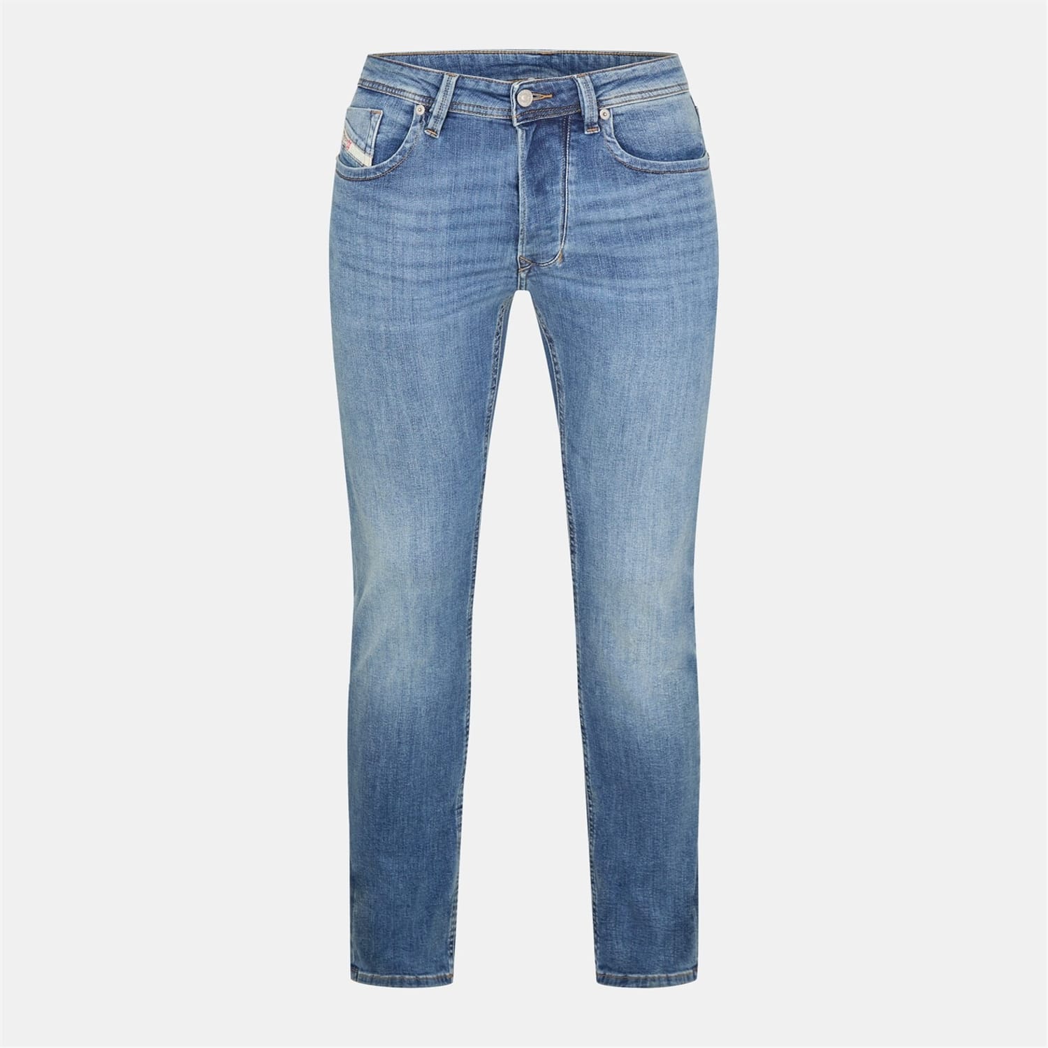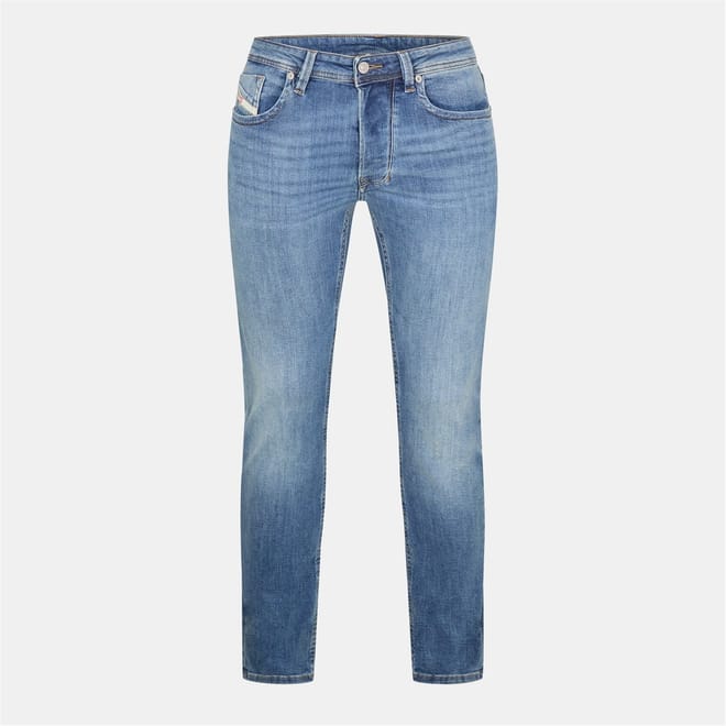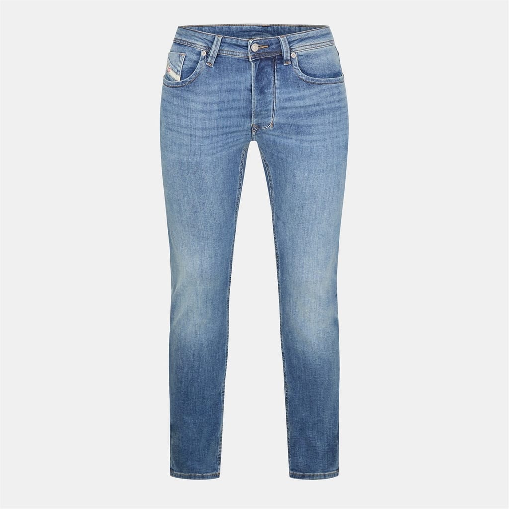 Diesel Larkee jeans feature a straight fit with a classic five-pocket design. Crafted with a washed pattern, these jeans include a zip fly, front button, and belt loops for secure closure. Embellished with rivets, stitching, and a waist patch, they offer both style and functionality. The jeans are completed with front, back, and coin pockets for added convenience. -
