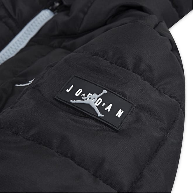 This Air Jordan puffer jacket is designed for those who appreciate style and functionality. Featuring a hooded neckline and a solid pattern, it offers a regular fit for comfort. The jacket is equipped with a zipper closure and showcases a prominent logo embellishment. Ideal for colder weather, its heavyweight construction ensures warmth and durability. -
