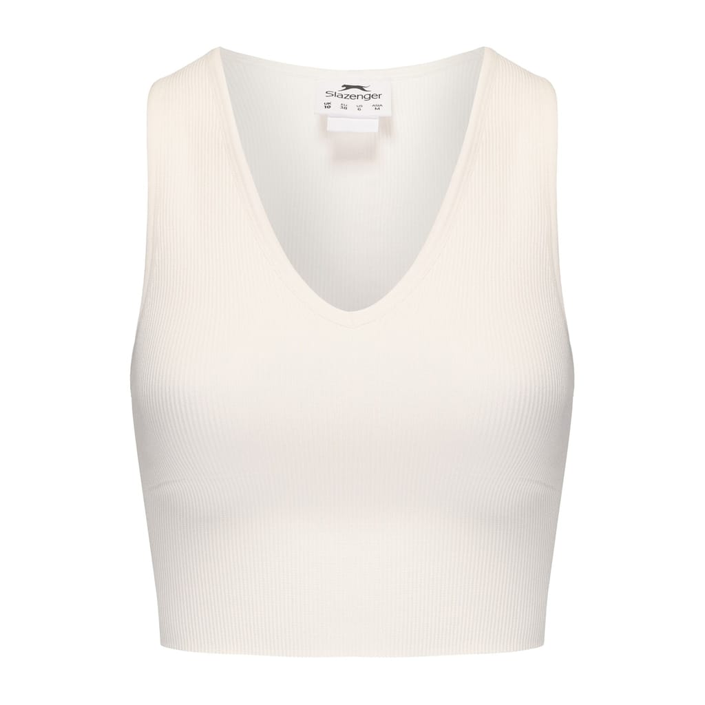 This Slazenger activewear top is a versatile addition to your wardrobe. Featuring a sleeveless design and a V-neck, it offers a slim fit for a flattering silhouette. The cropped length and ribbed pattern add a modern touch, while the logo embellishment provides a subtle brand detail. Available in a convenient 2-pack, it's perfect for those who appreciate style and functionality. -