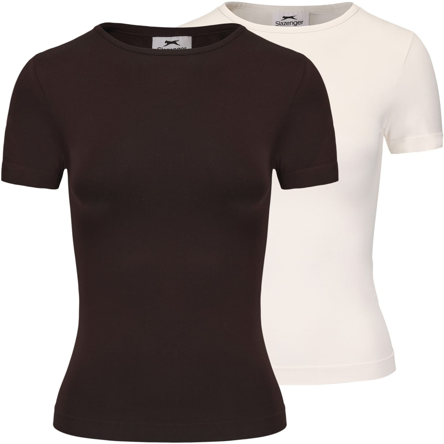 This 2-pack of Slazenger tops offers a slim fit with a classic crew neck design. Featuring short sleeves and a solid pattern, these casual tops are perfect for everyday wear. The subtle logo embellishment adds a touch of brand identity. -