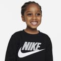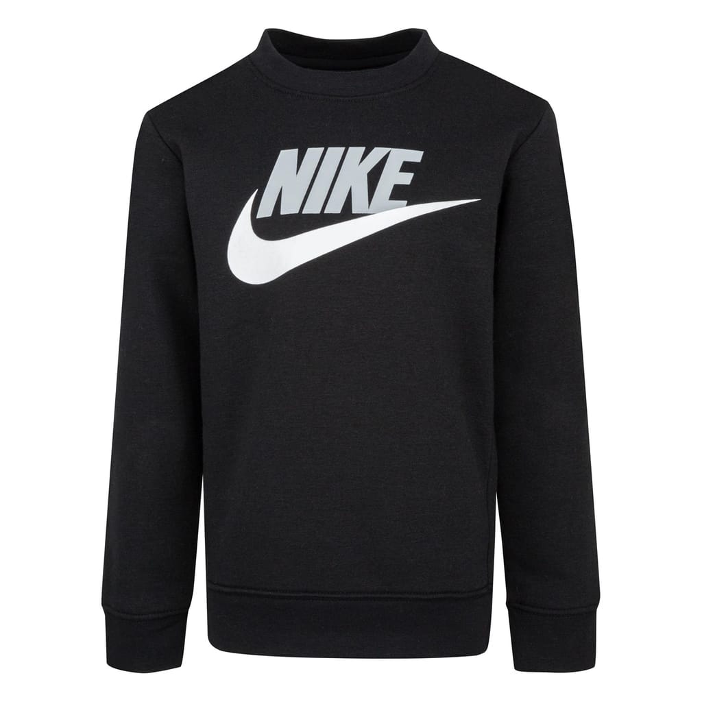 This Nike sweatshirt features a crew neck and long sleeves, offering a regular fit. Embellished with a logo print, it provides a stylish touch. The ribbed cuff and collar add a classic detail to the design. -