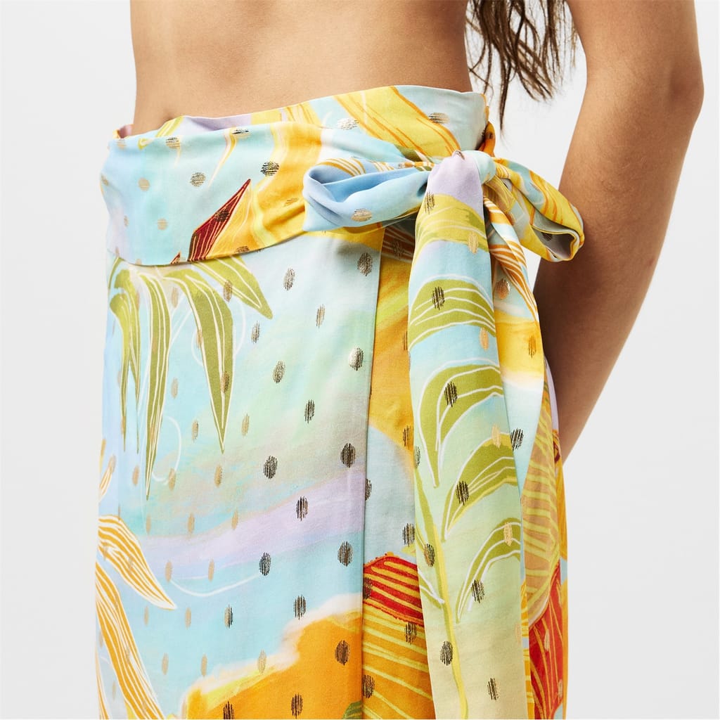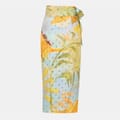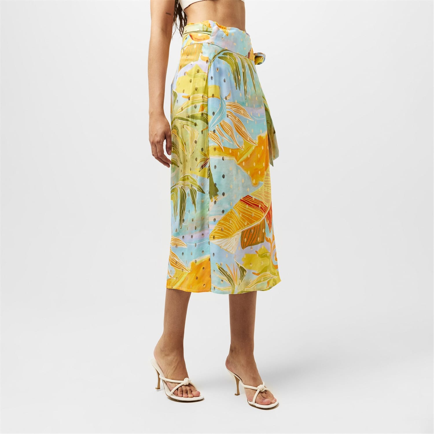 The Never Fully Dressed sky wrap skirt is a stylish addition to your casual collection. This midi-length skirt features a beautiful floral pattern and a convenient tie waist closure, offering both comfort and elegance. Perfect for those who appreciate a blend of fashion and functionality. -