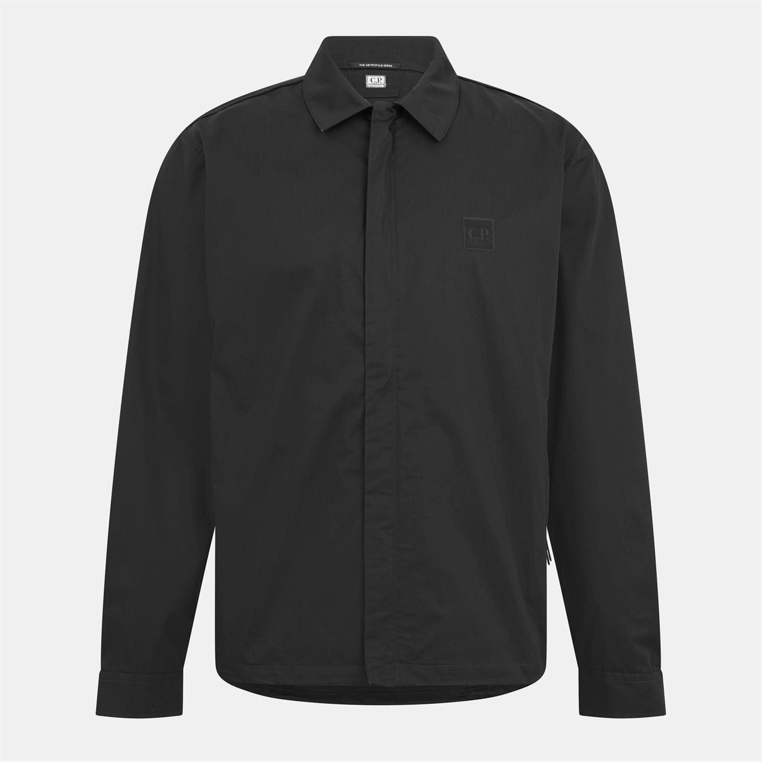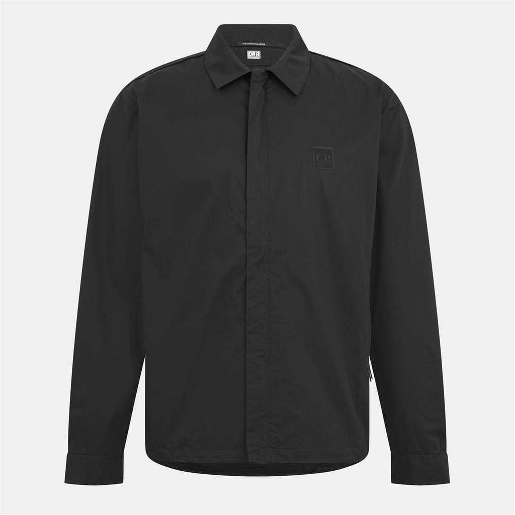 This C.P. Company overshirt features a classic shirt collar and a curved hem, offering a regular fit. The solid pattern is complemented by snap button closure and practical pockets. The design is finished with the brand's logo, adding a touch of distinction to this versatile piece. -