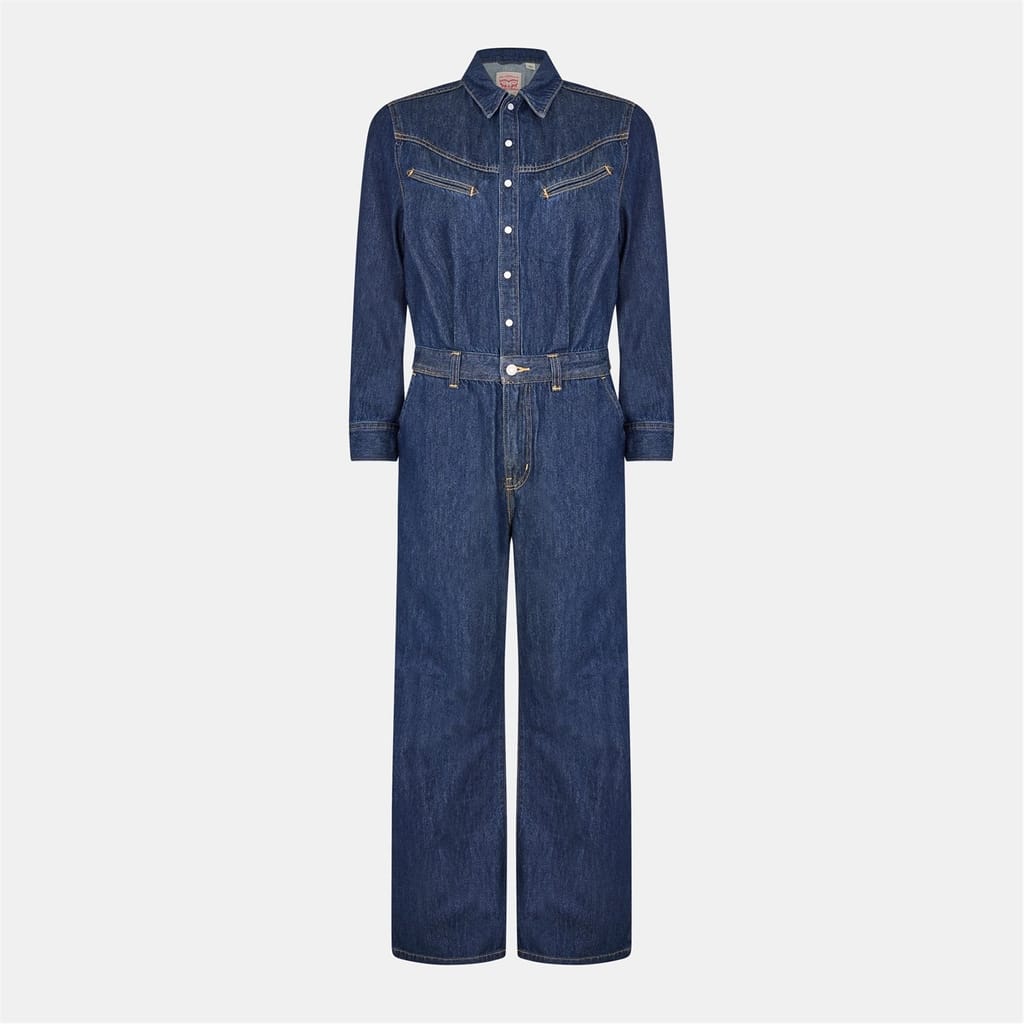 Discover Levi's jumpsuit featuring a collared neck and long cuff sleeves. This relaxed fit design includes button and zip fly closures, offering both style and functionality. The jumpsuit is adorned with practical pockets, making it a versatile addition to your wardrobe. -