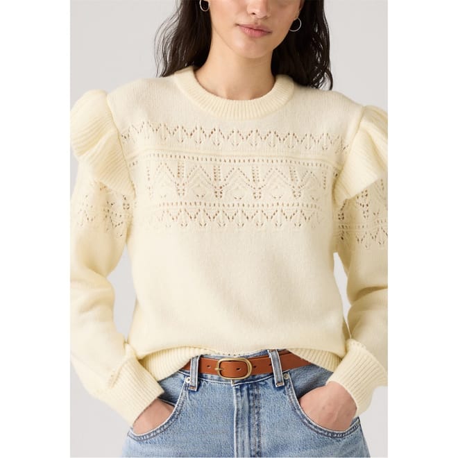 Discover Levi's knit top, featuring a crew neck and long puff sleeves. This regular fit design is enhanced with ribbed cuffs, offering a stylish and comfortable wear. Perfect for those who appreciate classic fashion with a modern twist. -