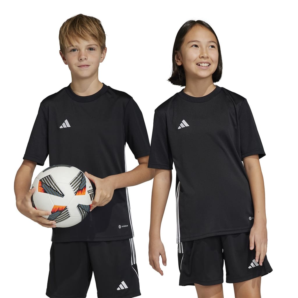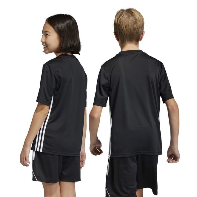 The Tabela 23 Jersey Youth, from adidas is ideal for young football enthusiasts. This regular-fit, short-sleeve jersey is knit from 100% recycled polyester, ensuring a responsible choice when gearing up for the pitch. With AEROREADY technology, mesh sleeves and an embellishment-friendly design, it promises dryness and comfort all game long. Always be at your best and show your team spirit with this classic signature 3-Stripes and 3 Bar Logo T-Shirt.