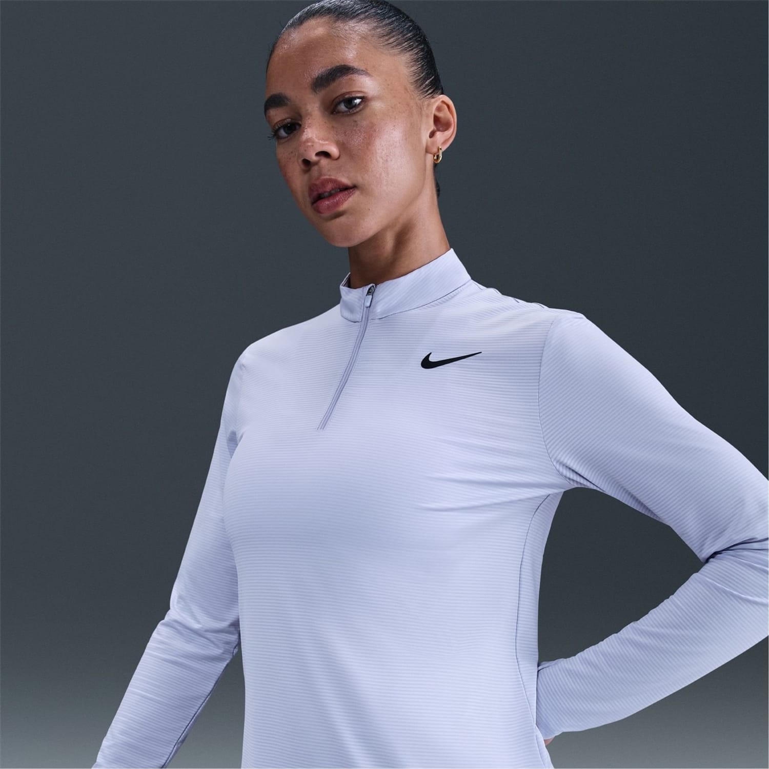 This Nike top is a perfect addition to your activewear collection. Featuring a zip neck and long sleeves, it offers a regular fit for comfort. The ribbed pattern adds a touch of style, while the logo embellishment provides a signature finish. Ideal for those seeking a blend of functionality and design. -