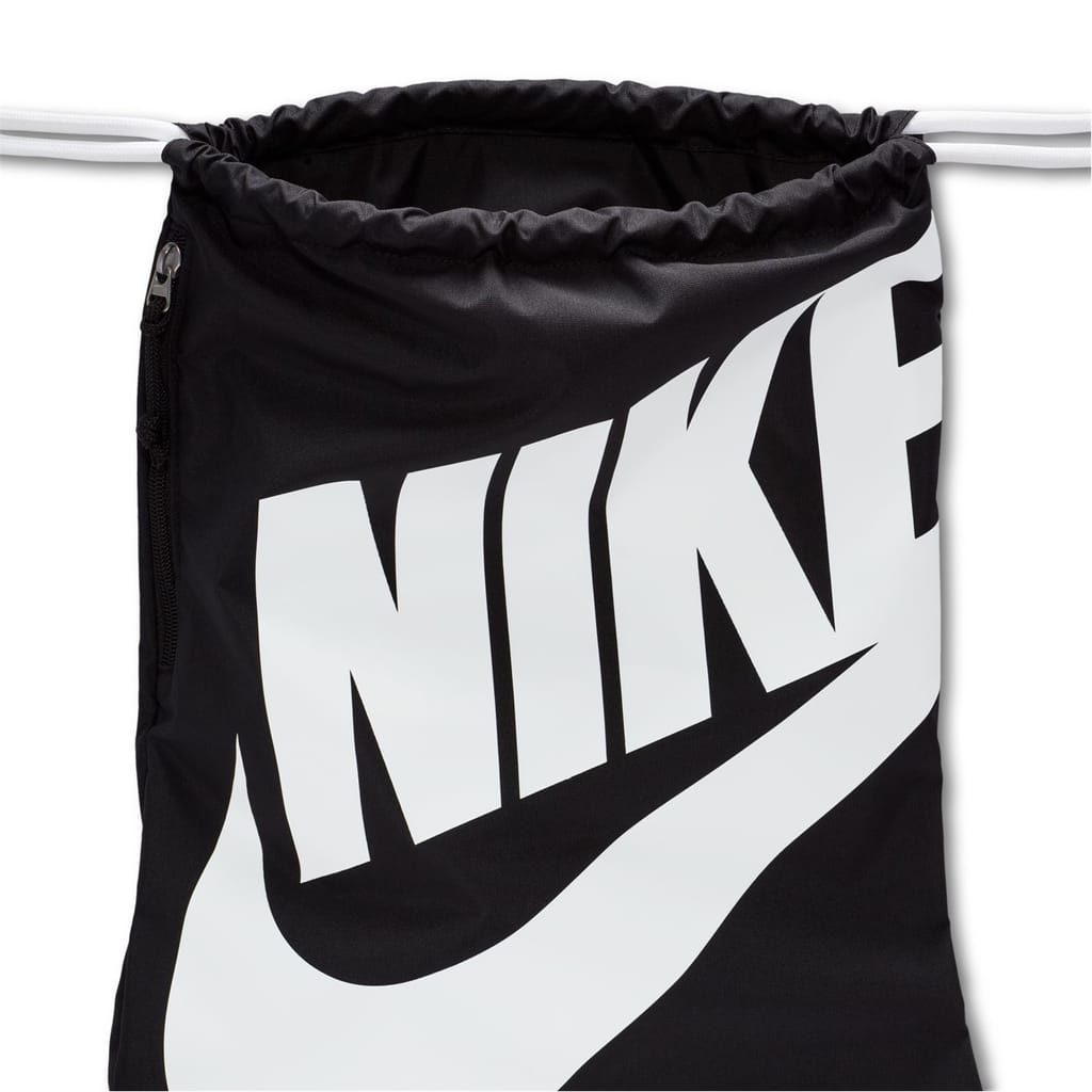 The Nike heritage backpack is a versatile choice for gym enthusiasts. Featuring a graphic print and a prominent logo, this backpack combines style with functionality. It offers a secure zipper closure and a convenient drawstring for easy access. Ideal for carrying your essentials, this backpack is a must-have for fitness and gymwear collections. -