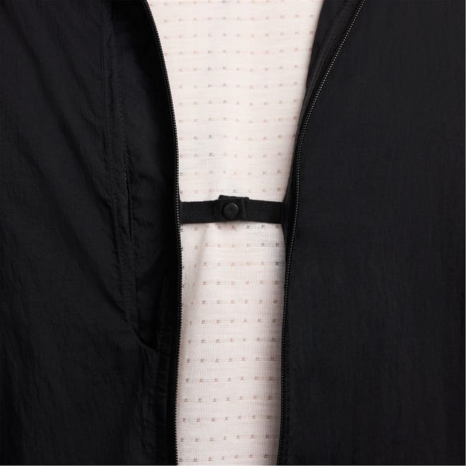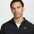 Nike trail jacket designed for performance. This short, regular fit jacket features a hooded neck and a zipper closure. The solid pattern is complemented by an elasticated cuff, ensuring comfort and style. Embellished with the iconic logo, this piece is perfect for sporting activities. -