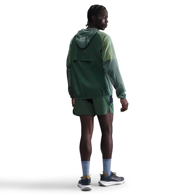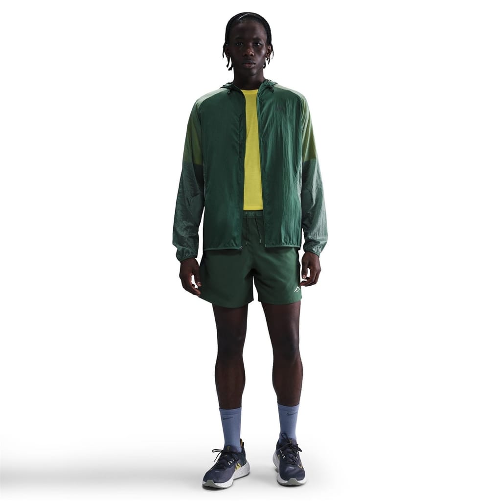 This Nike trail jacket is designed for performance with a relaxed fit and a hooded neckline. Featuring a zipper closure and elasticated cuffs, it ensures comfort and functionality. The solid pattern and logo embellishment add a sleek touch, while the straight hem completes the look. Ideal for sporting activities, this short jacket is a versatile addition to your wardrobe. -