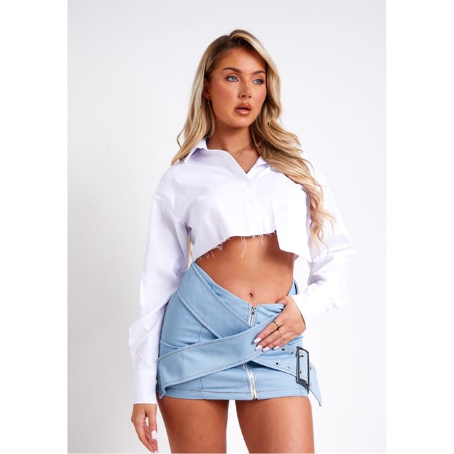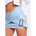 Get ready to slay with the Mid Wash Pastel Blue Denim Belted Mini Skirt, the it piece for your trendy wardrobe. This sassy skirt is all about fun and flirty vibes, perfect for brunch or a night out. Team it with a graphic tee and heels for a laid-back cool edgy look or dress it up with a crisp white shirt for a sophisticated edge. This skirt is the ultimate on-trend must-have to slay the fashion game! -