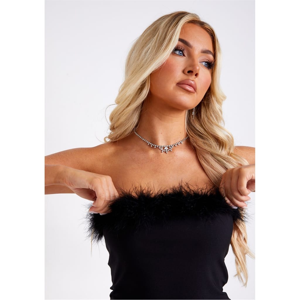 Command attention in the Feather Trim Strapless Mini Dress. This dress really is a jaw-dropping dream. The feather trim adds flirtatious drama, while the strapless cut says, I'm here for a good time. Pair it with killer heels and statement earrings. Prepare to own the night and prepare for compliments! -