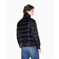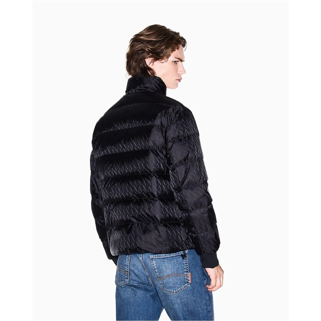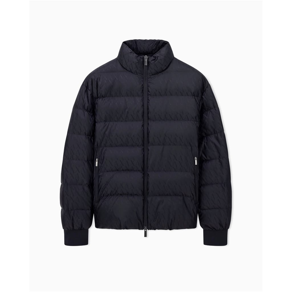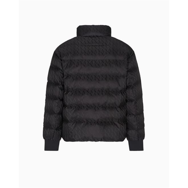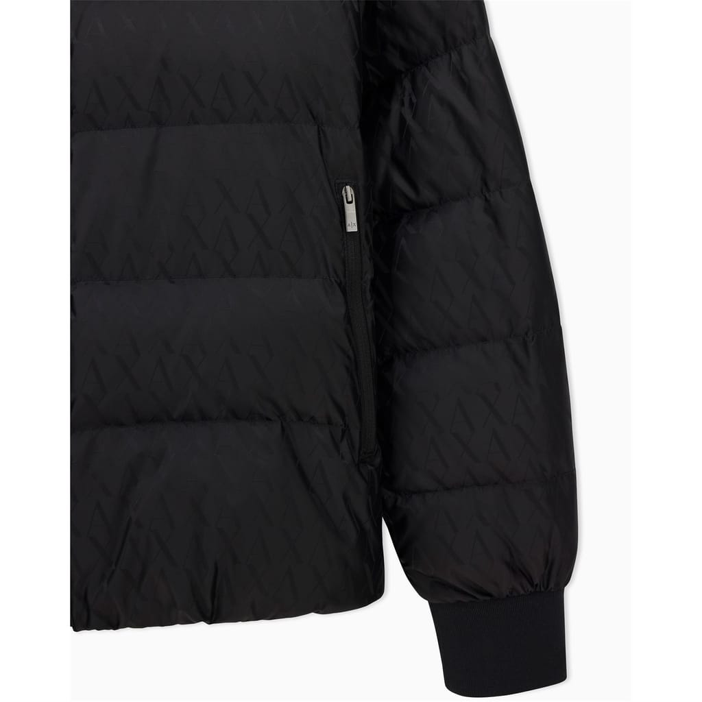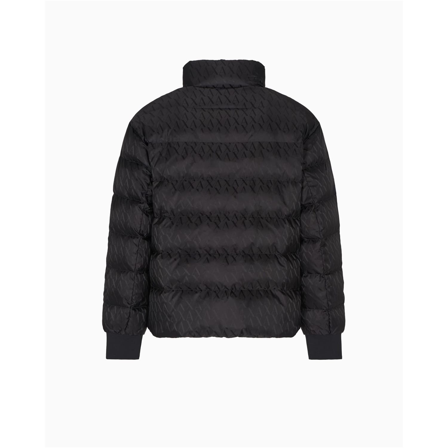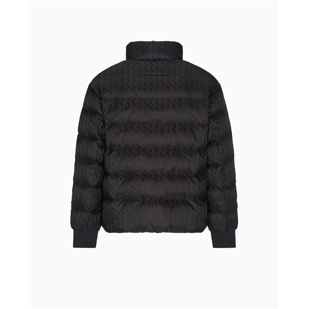This Armani Exchange puffer coat features a bomber collar and a ribbed hem, offering a stylish and functional design. The jacket is crafted with a solid pattern and a regular fit, ensuring comfort and versatility. It includes a zipper closure and ribbed cuffs, making it a practical choice for cooler weather. -